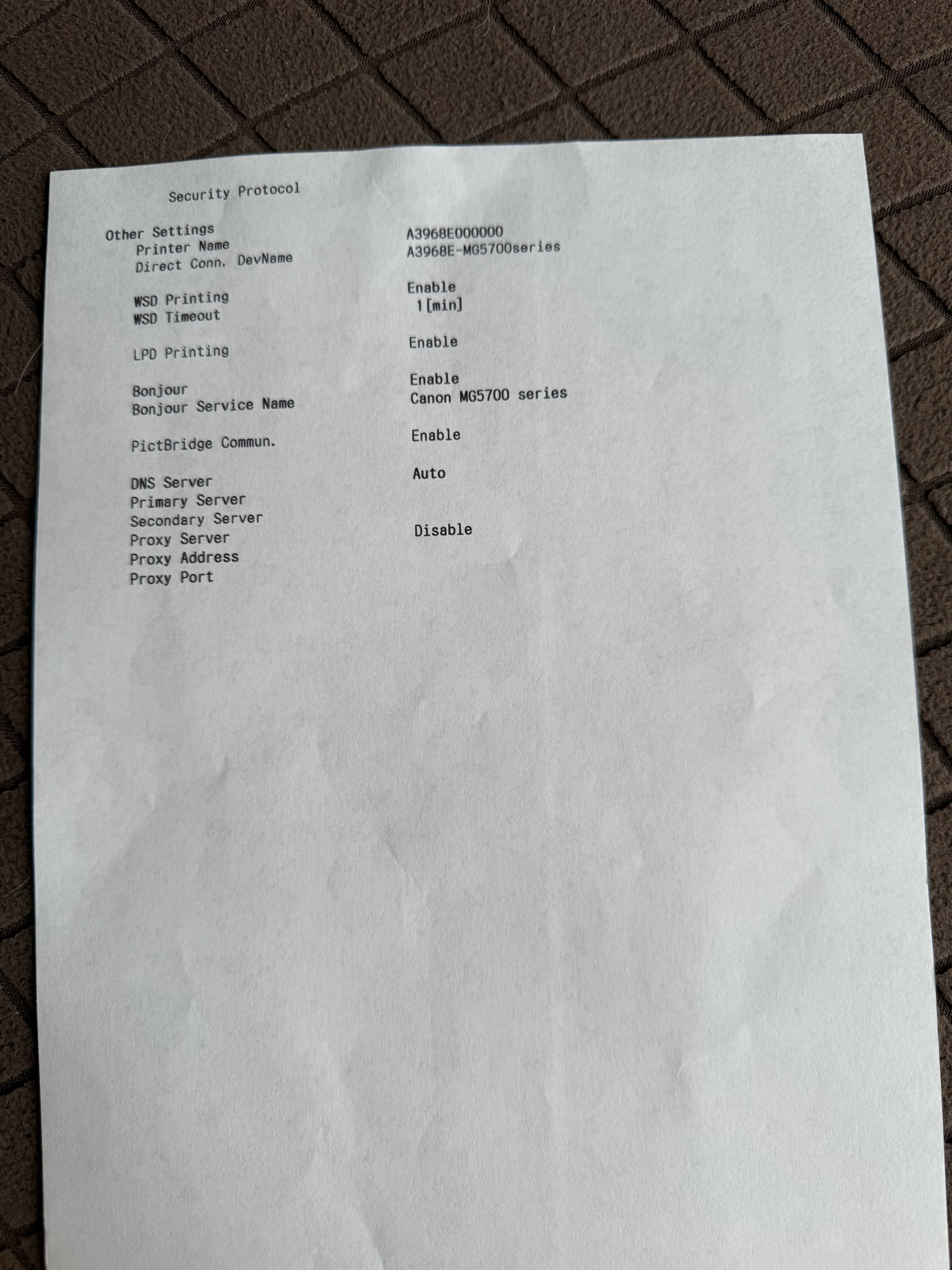 De printer ondersteunt uitsluitend WEP/WPA/WPA2 en kies dus uitsluitend voor WPA2, de meest veilige voor jouw printer.