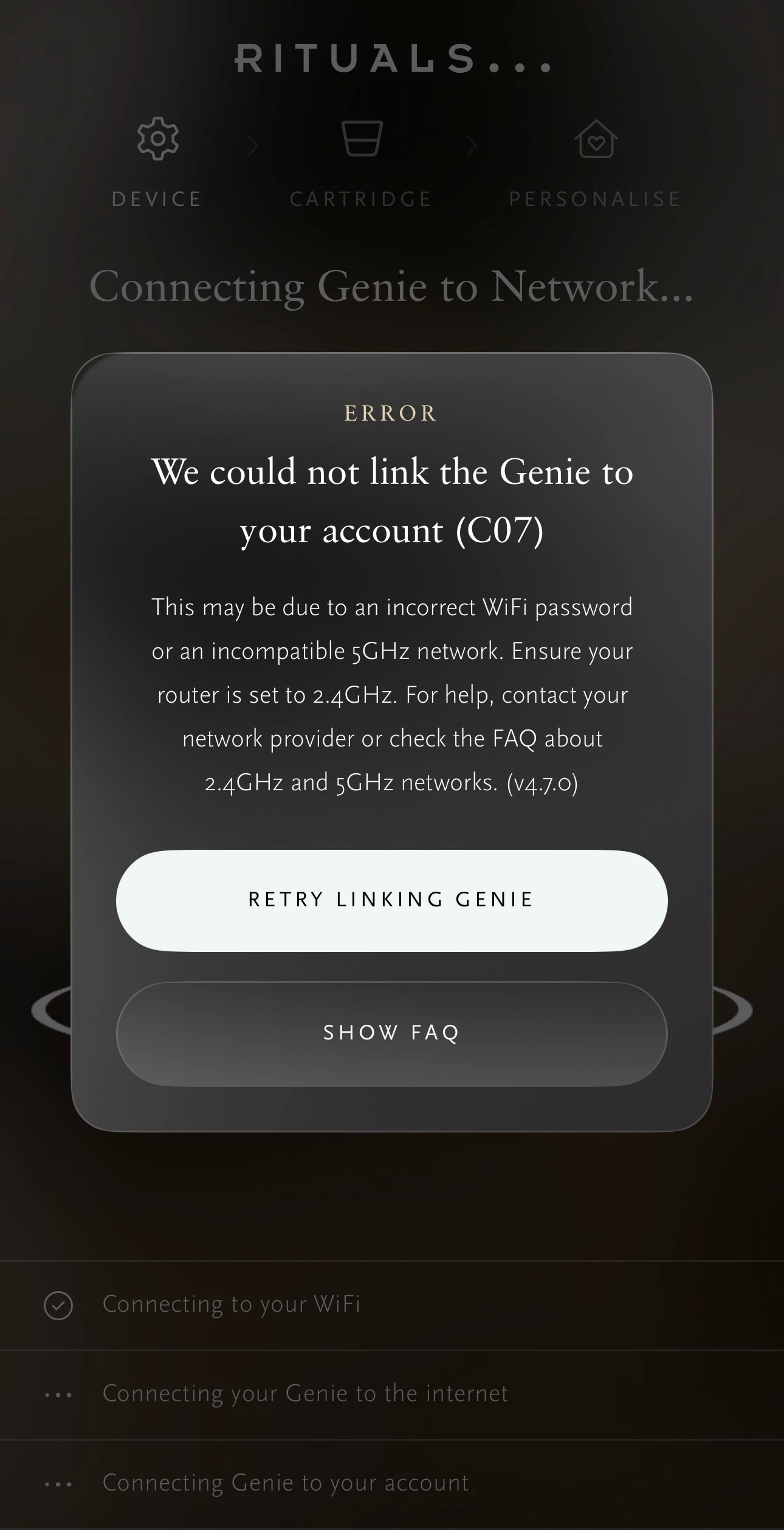 Nog even gegoocheld, de rituals kan alleen overweg met 2,4 GHz, dus extra netwerk gebruiken is aan te raden.