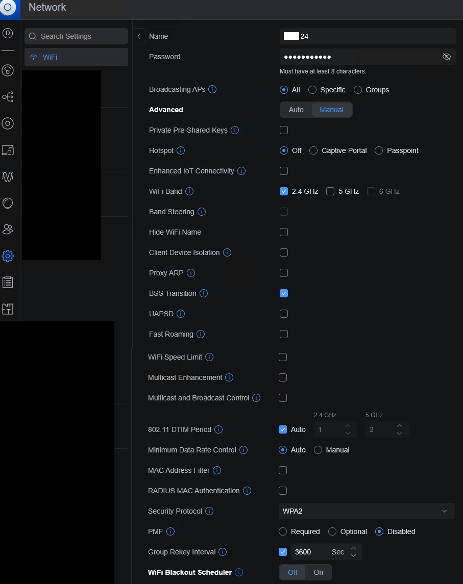 Zet die Wifi op de Box 12 weer uit en maak op de Unifi een extra SSID aan wat alleen 2.4GHz gebruikt, ik heb ook wel eens zo’n aparte SSID aangemaakt voor bepaalde apparatuur die niet met het normale Wifi netwerk wilde verbinden: