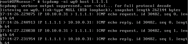 Je kunt in OPNsense met “tcpdump -ni <WAN interface> port 51820 kijken of er wat binnenkomt.