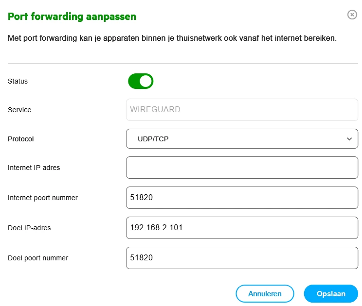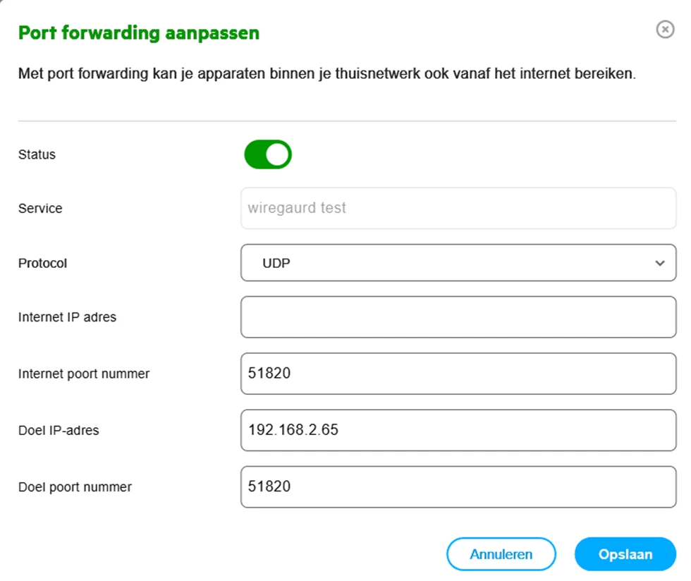 • Is het mogelijk om met een normaal KPN-abonnement een publiek IP of port forwarding voor WireGuard werkend te krijgen?