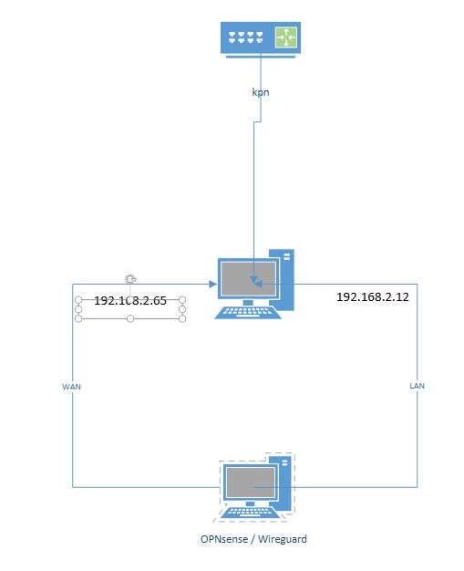 • WireGuard server (OPNsense) WAN IP: 192.168.2.65