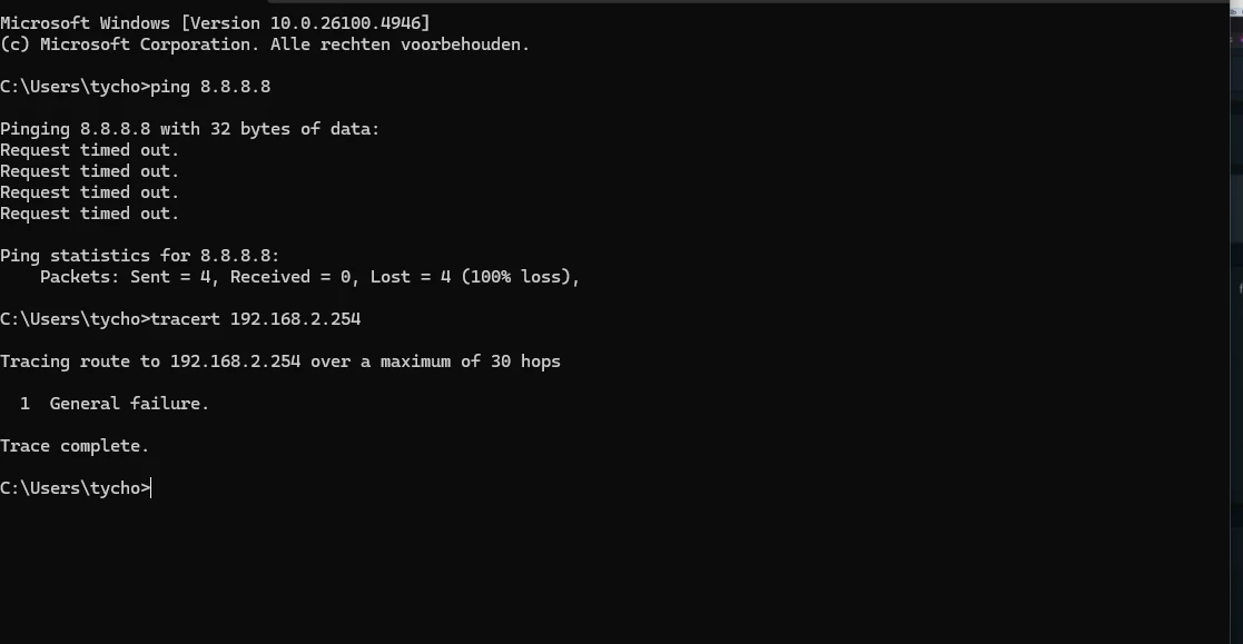 • Handshake tussen client en server werkt, maar geen internet via VPN