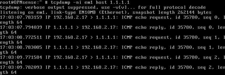 Voorbeelden van verkeer opgepikt met tcpdump in de OPNsense console