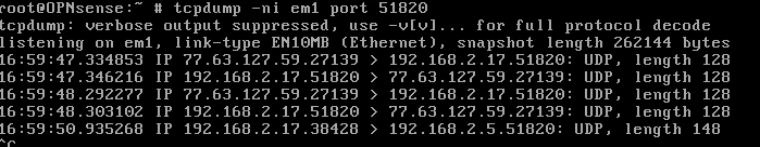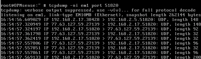 tcpdump op WAN poort 51820 initialisatie vanuit telefoon