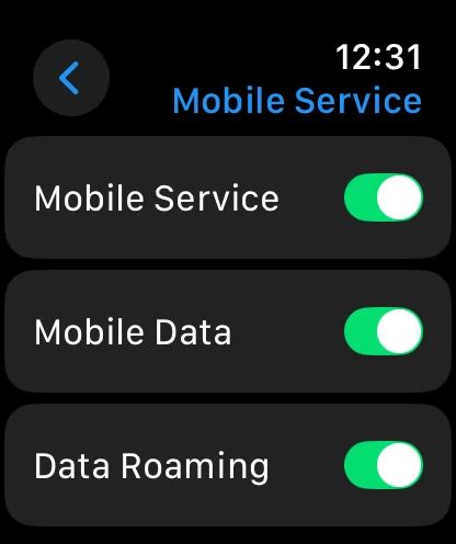 • Data-roaming staat aan op zowel mijn iPhone als mijn Apple Watch.