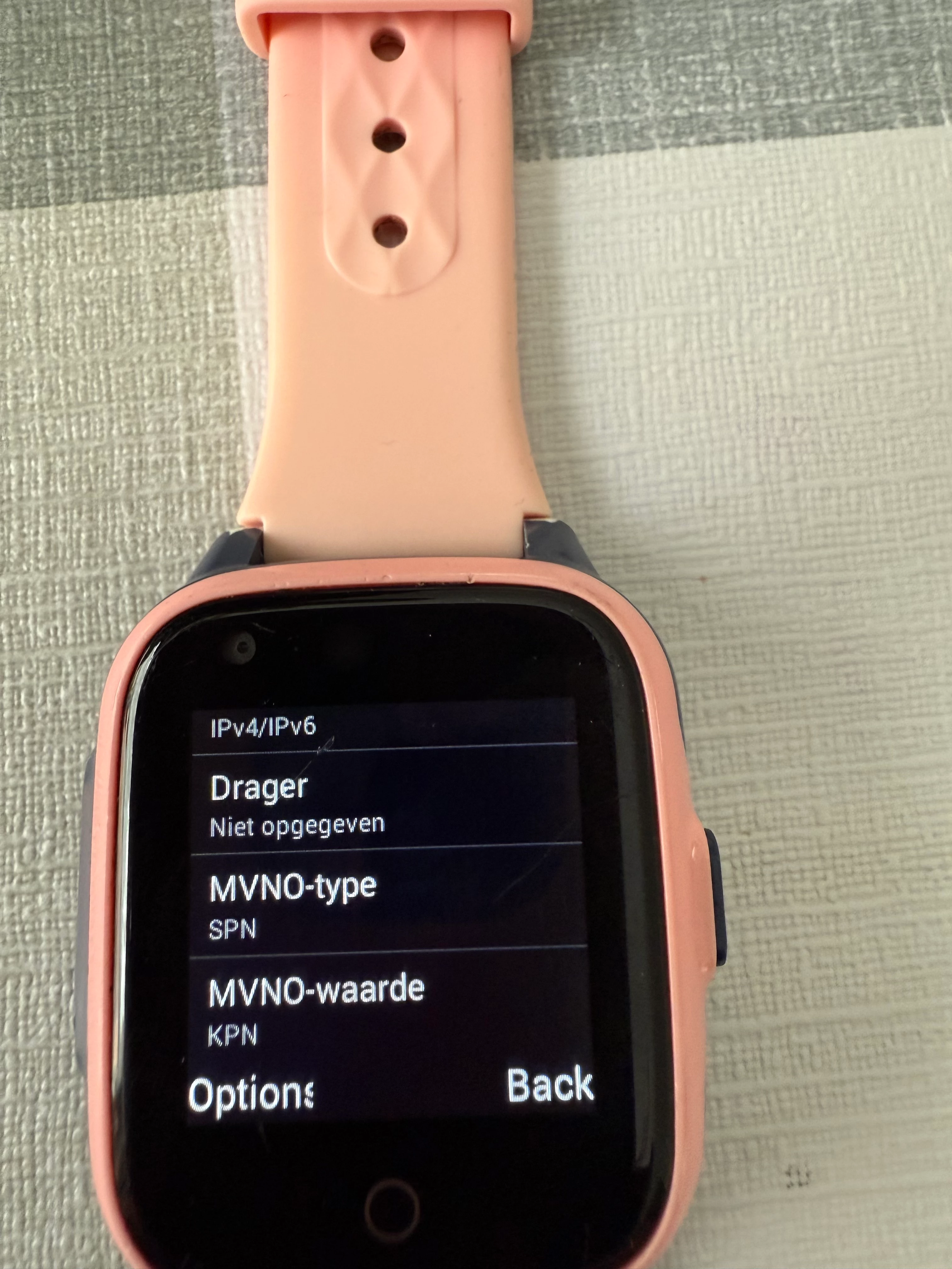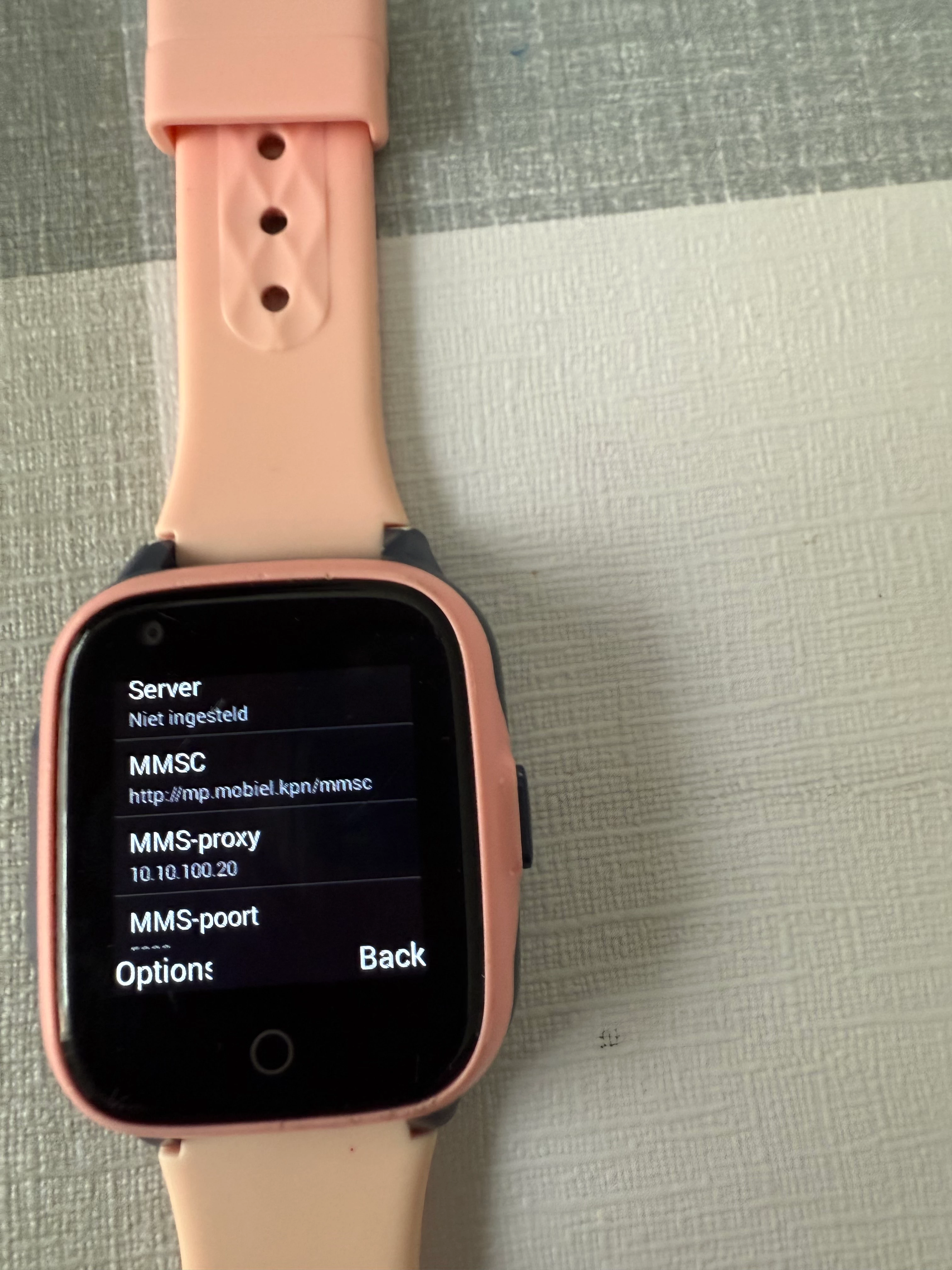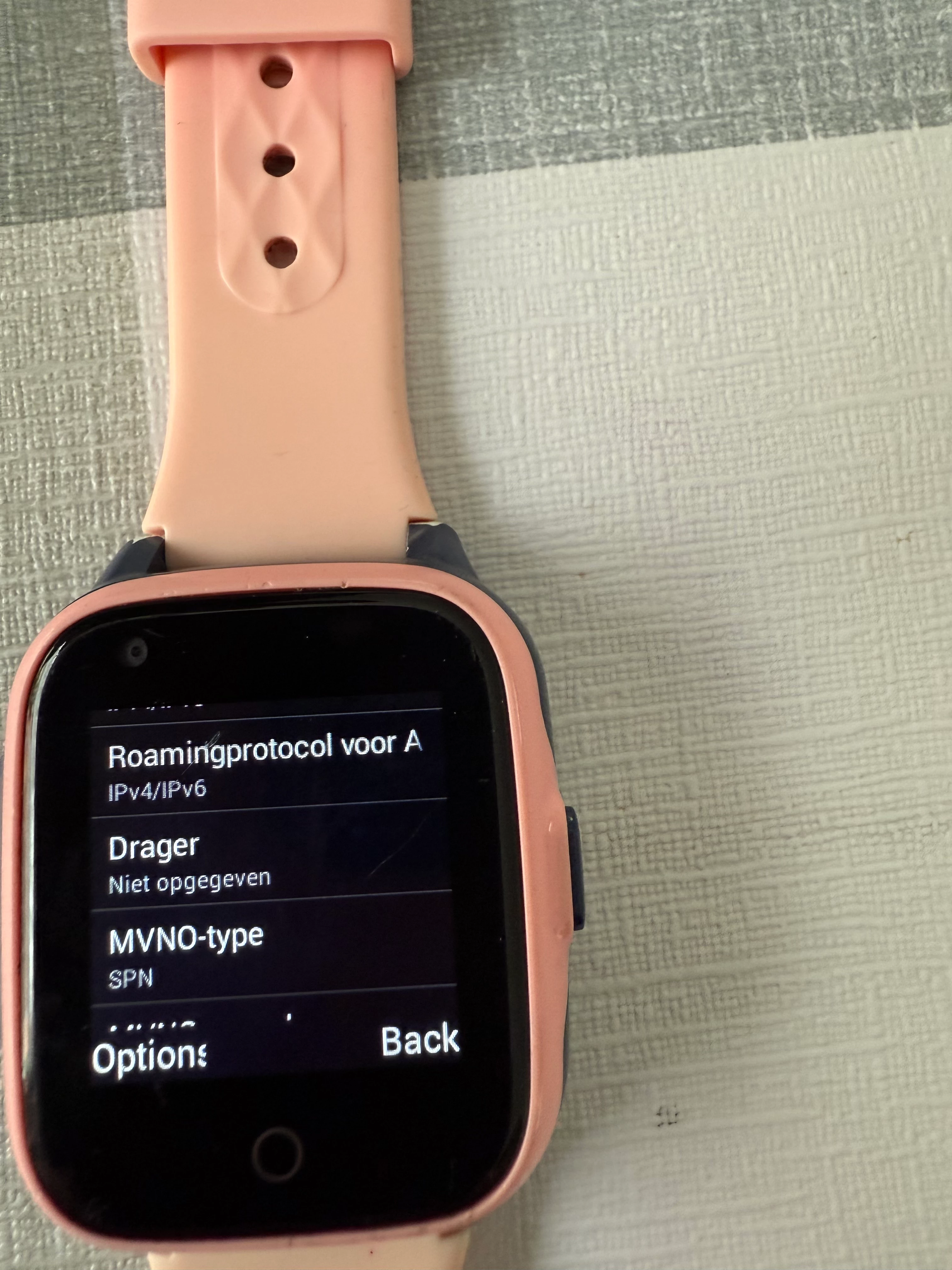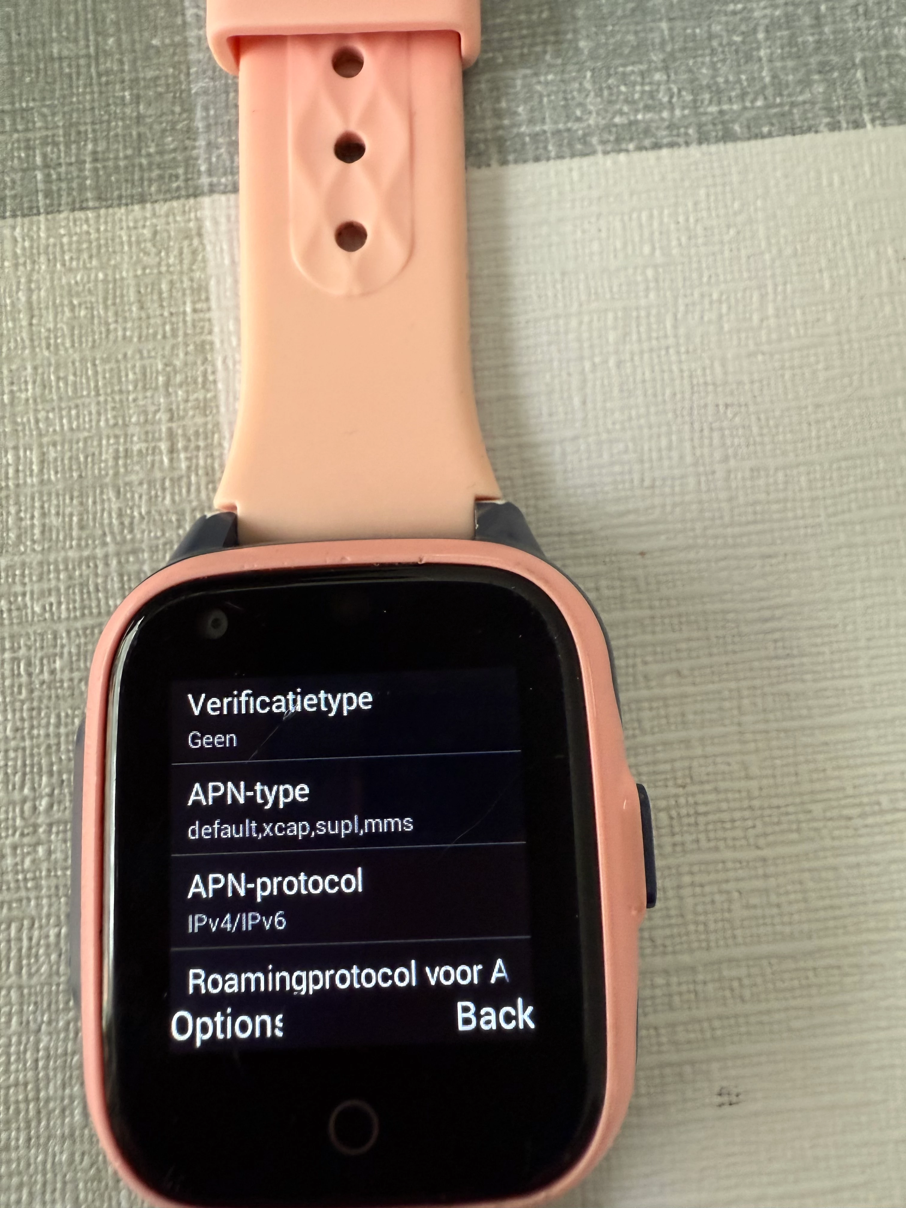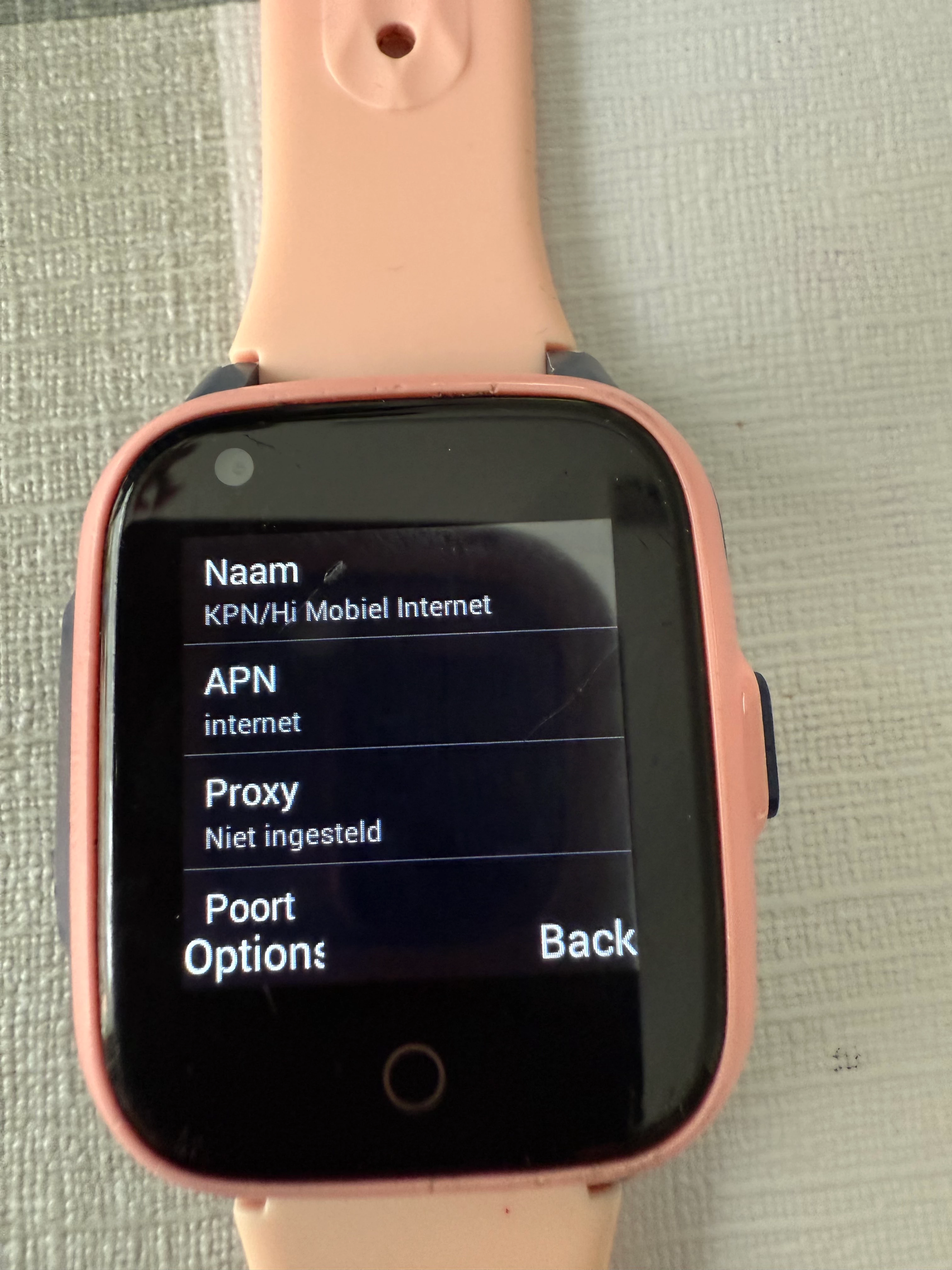 Zo te zien is het horloge een Android toestel. Om die reden deel ik mijn Samsung apn internet instellingen met je. Mijn Samsung is ook Android. Zorg dat je mij instellingen juist overneem.