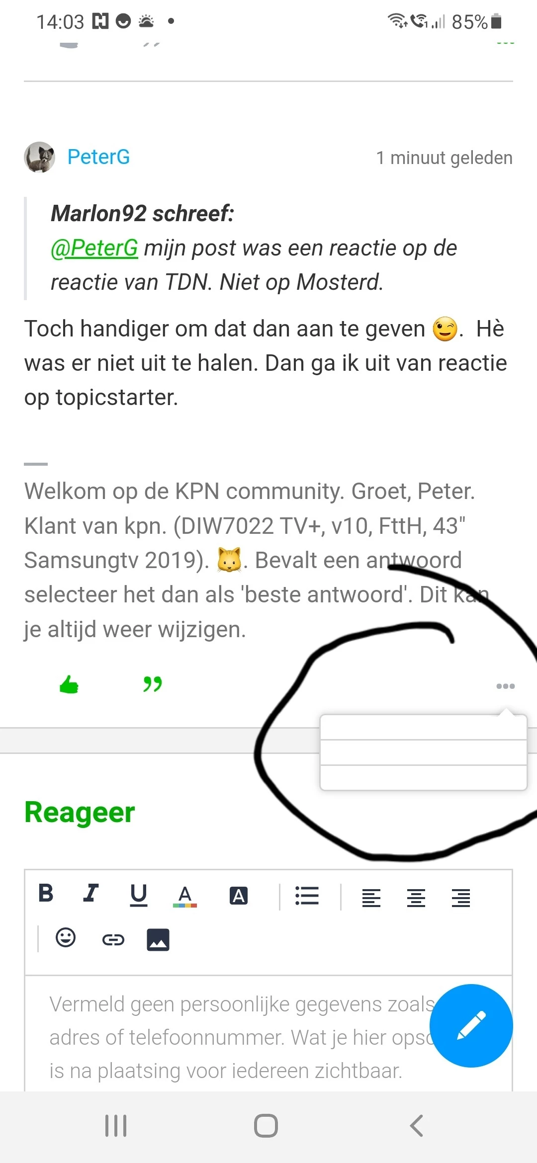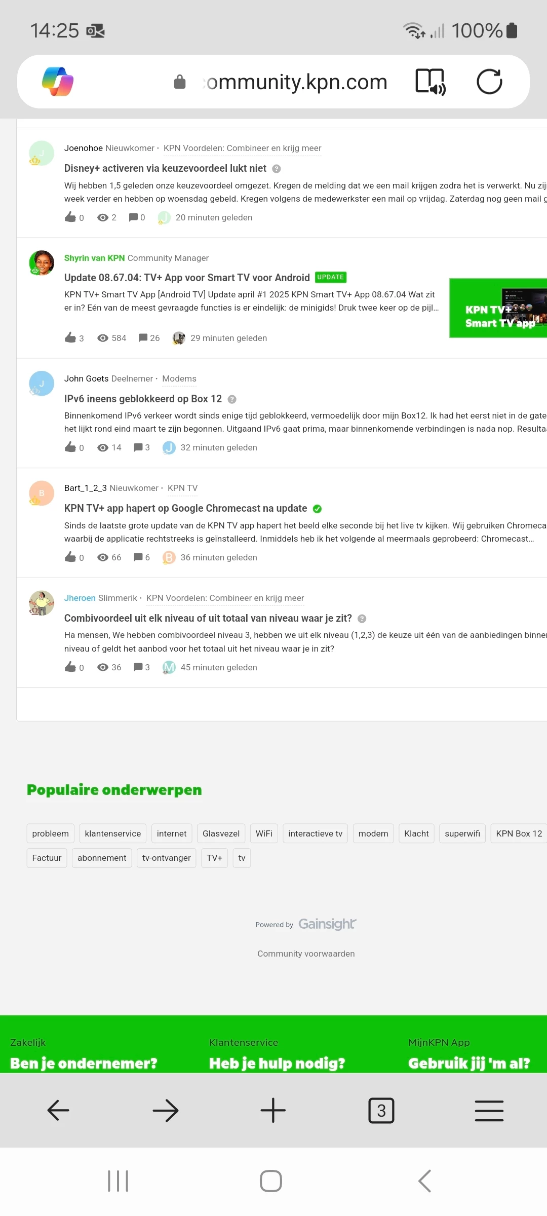 Andere browser. Wel ook even op de telefoon. Laptop nog niet geprobeerd. Maakt niet uit of het eigen of andere reactie is ​@Sanne van KPN .