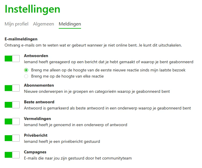 De ‘Je bent genoemd’ en ‘Het topic … is beantwoord’ mails krijg ik wel allemaal.