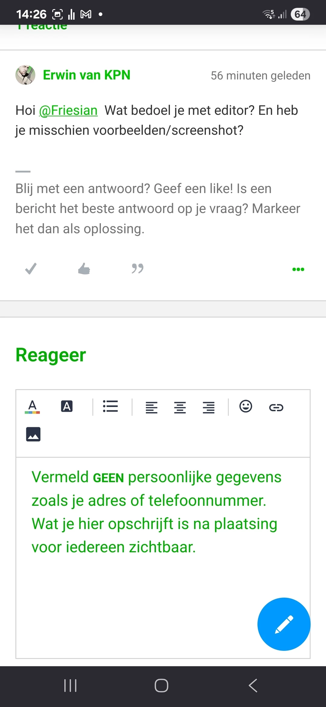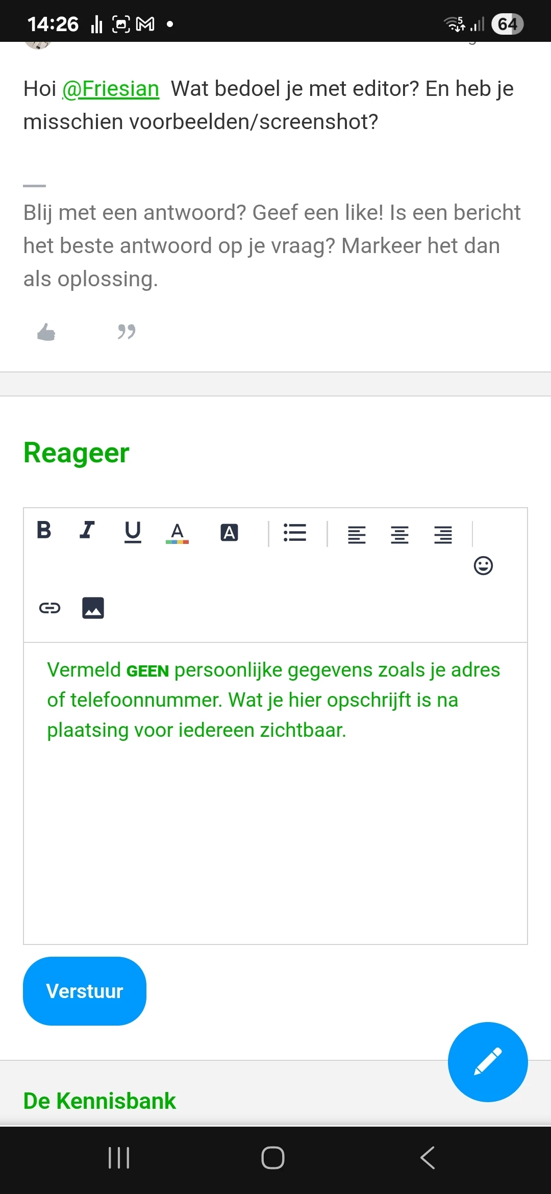 In de mobiele pagina van met name Firefox merk ik dat de editor van zowel Simyo als Kpn forum/community afwijkingen vertonen.