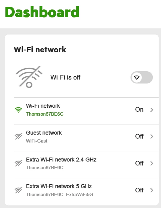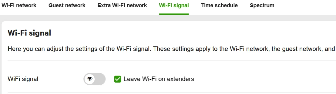 Oplossing: definieer de SSID's zoals je ze wilt instellen, ook al heb je ze ingesteld in de browser…. ze werken zo NIET. Zet daarna “Leave Wifi on Extenders” uit en daarna zet je Wifi helemaal uit. Je hebt dan geen enkele Wifi meer.