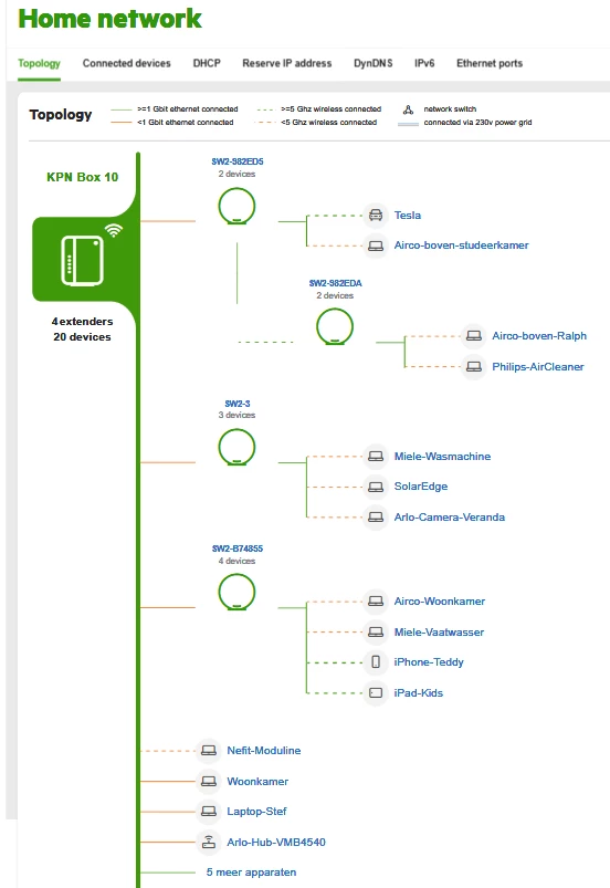 Mijn eigen mobiel (alhoewel 100% zeker gekoppeld aan 1 vd 3 SSID's en werkende Wifi verbinding) verschijnt niet op het overzicht “Connected devices”.