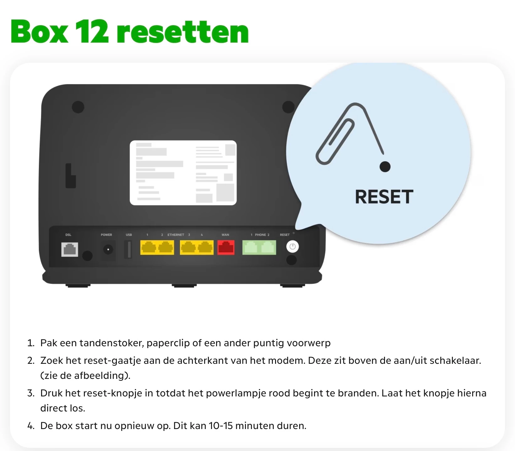 Ja weet hoe je moet resetten installeren alles zelf was hier ooit monteur die was onder de de indruk van netjes alles was weg gewerkt en hoe ik dat gedaan had zij nog zo moet het bij meerdere zijn ! Fout zit dan denk gewoon bij de modem