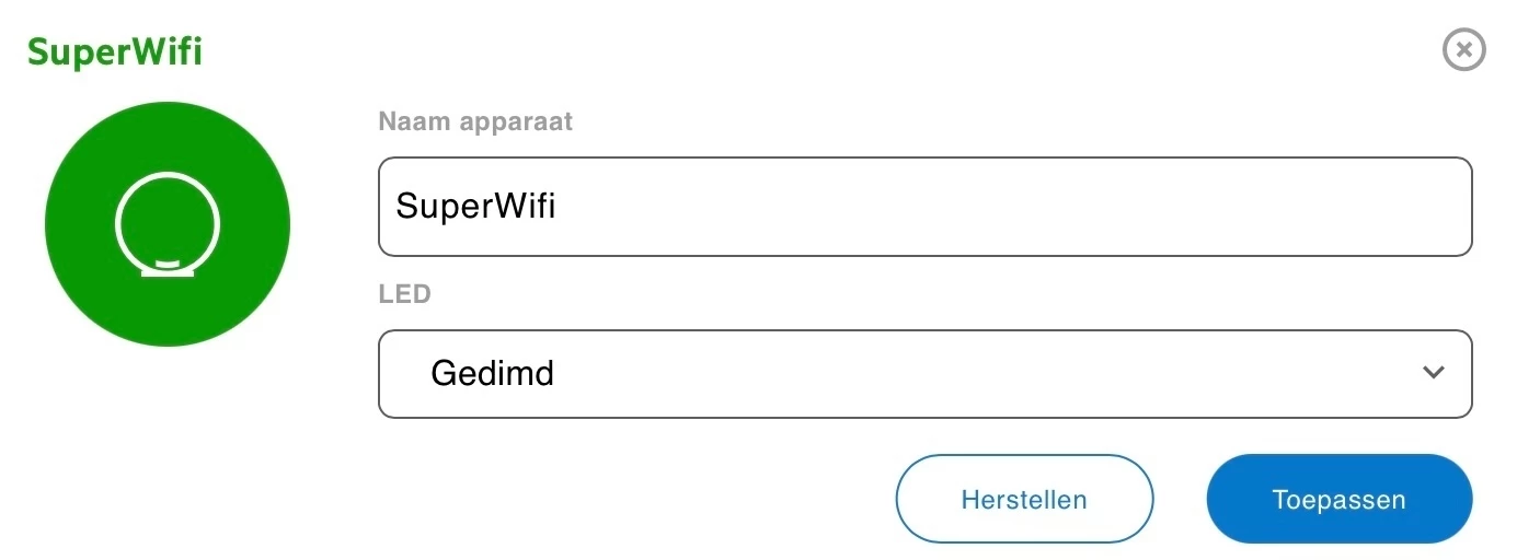 Bij thuisnetwerk op verbonden apparaten drukken en dan het “potloodje” aanklikken bij superwifi logo en dan de naam aanpassen van je superwifi2