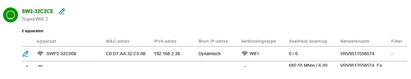 Heeft allemaal niets geholpen, na 8 uur, en een modem restart hetzelfde resultaat. 1 superwifi2, de 2e wordt nog steeds gezien aks iets anders