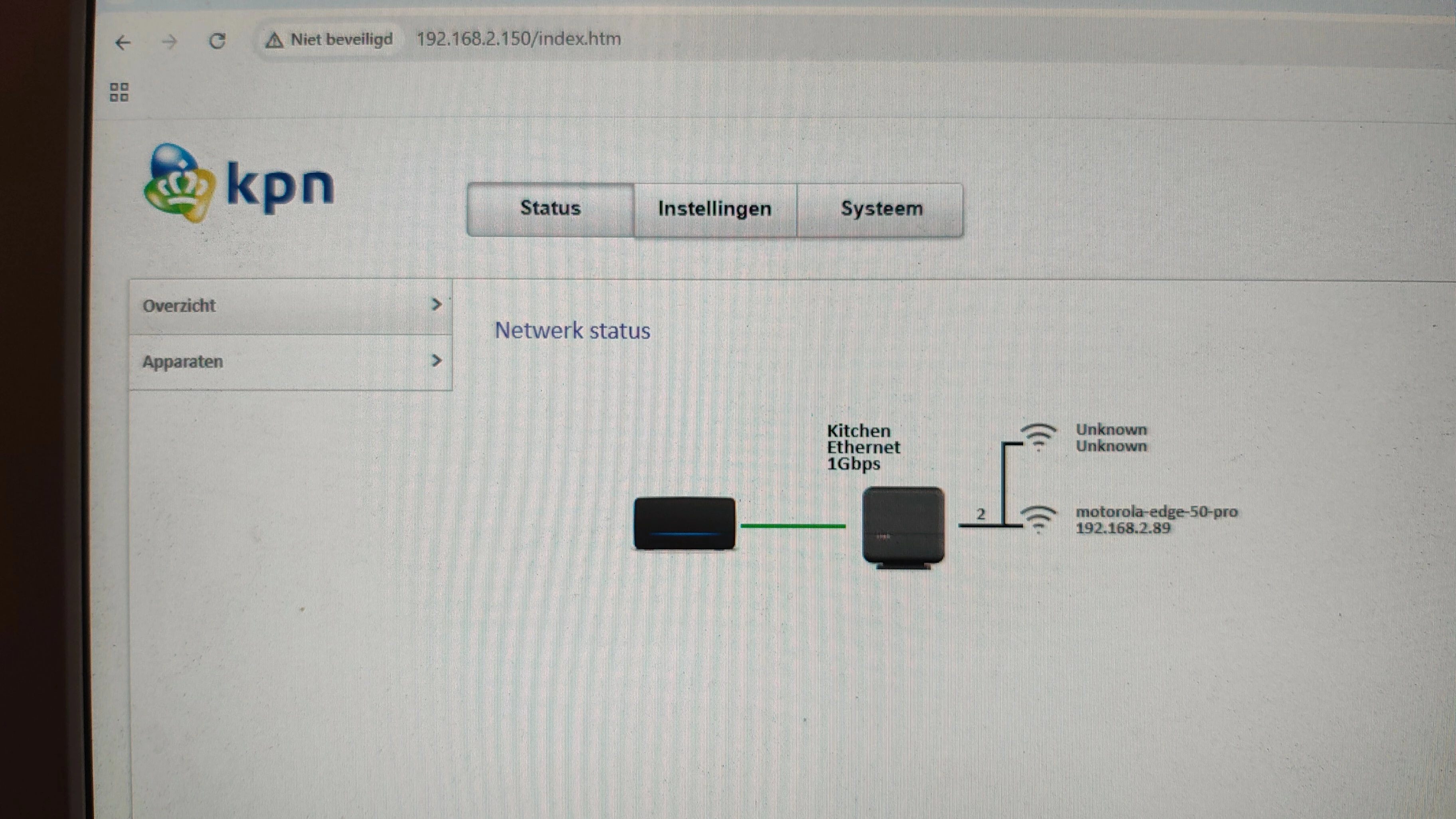 Zijn deze twee apparaten wel gemigreerd? Kun jij nog apart op de webinterface van deze beide apparaten inloggen? Zo ja, dan zijn ze nog niet gemigreerd. Dat zou moeten gebeuren als je ze bekabeld aansluit op je modem, de wifipunten een reset geeft en ze dan een uur laat zitten. Als dat niet werkt, dan kun je dit nog een keer doen, maar dan ook met een reset van je modem erbij. Doe dit dan als volgt: