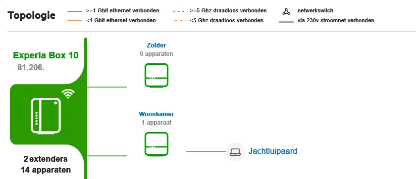 En wat ook vreemd is, mijn computer (Jachtluipaard) zit op poort #2 aangesloten maar volgens topologie niet via 1gbit kabel, maar de lijn is grijs, wat betekend dat?
