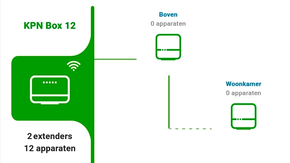 Als de EW niet als extender wordt weergegeven heeft deze nog niet de nieuwe KPN software zo simpel is het. Dat was bij mij ook het geval toen mijn Box12 de nieuwe software kreeg.
