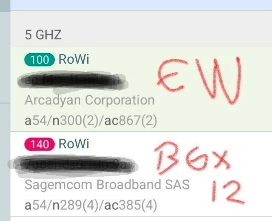Ter aanvulling in nagenoeg elke wifi scan app zou zoiets moeten zien als jouw ew goed werkt. Waar ik Sagemcom zie zal voor jouw v10 iets anders staan. Ik ben de fabrikant daarvan even kwijt.