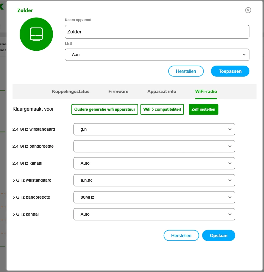 Aanvullend op de verminderde snelheid voor verbonden apparaten, ik krijg met geen mogelijkheid de EW-punten op "klaargemaakt 5G”, het springt altijd weer terug naar “zelf instellen”, ervaren anderen dit ook?