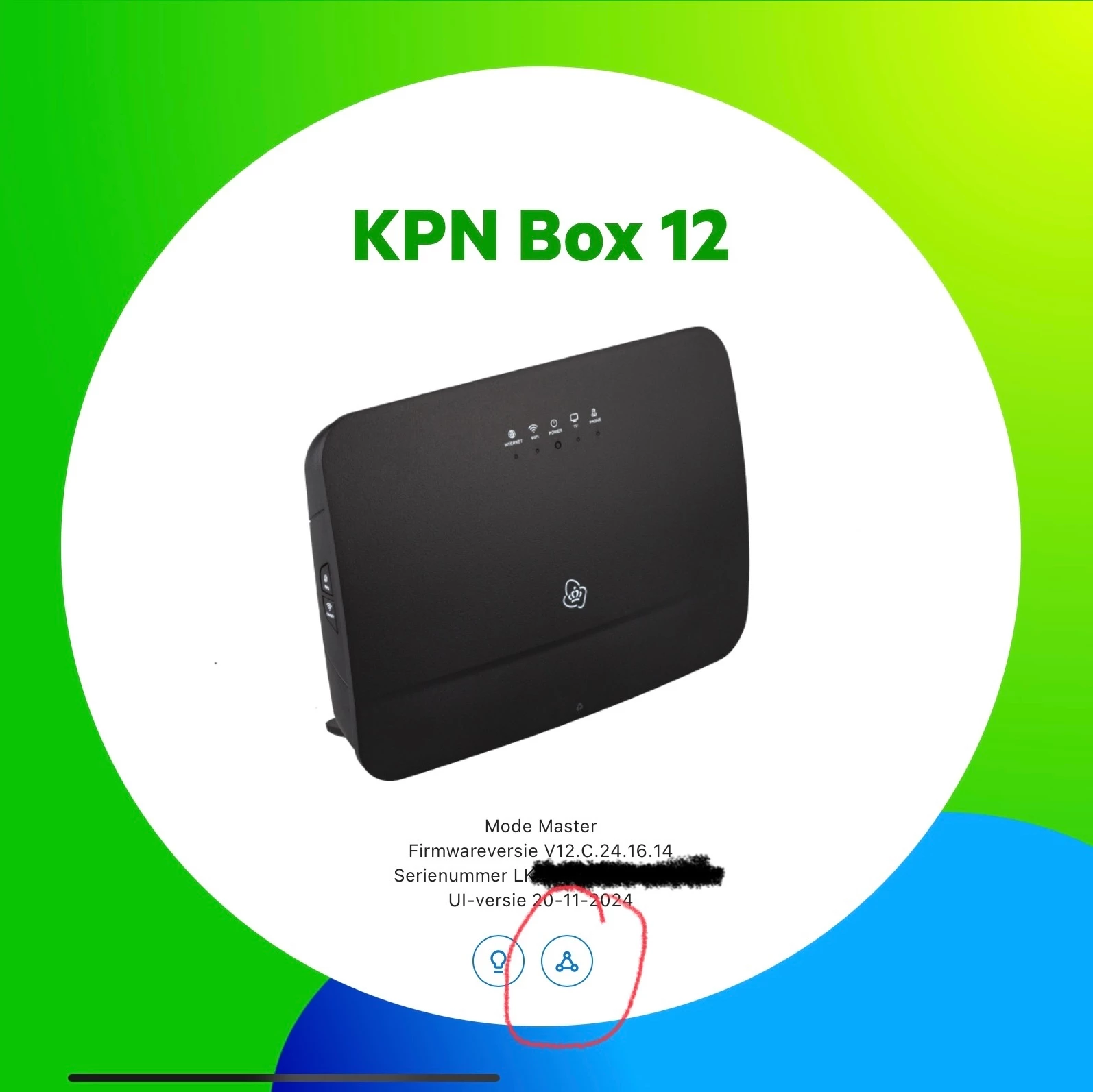@Raymond-Jacqueline  nadat je op het aangegeven cirkeltje hebt gedrukt dan druk naderhand op de blauwe tekstbalk 192.168.2.xxx dan zie je vanzelf de smartwifi firmwareversie verschijnen onder de foto van de smartwifi.