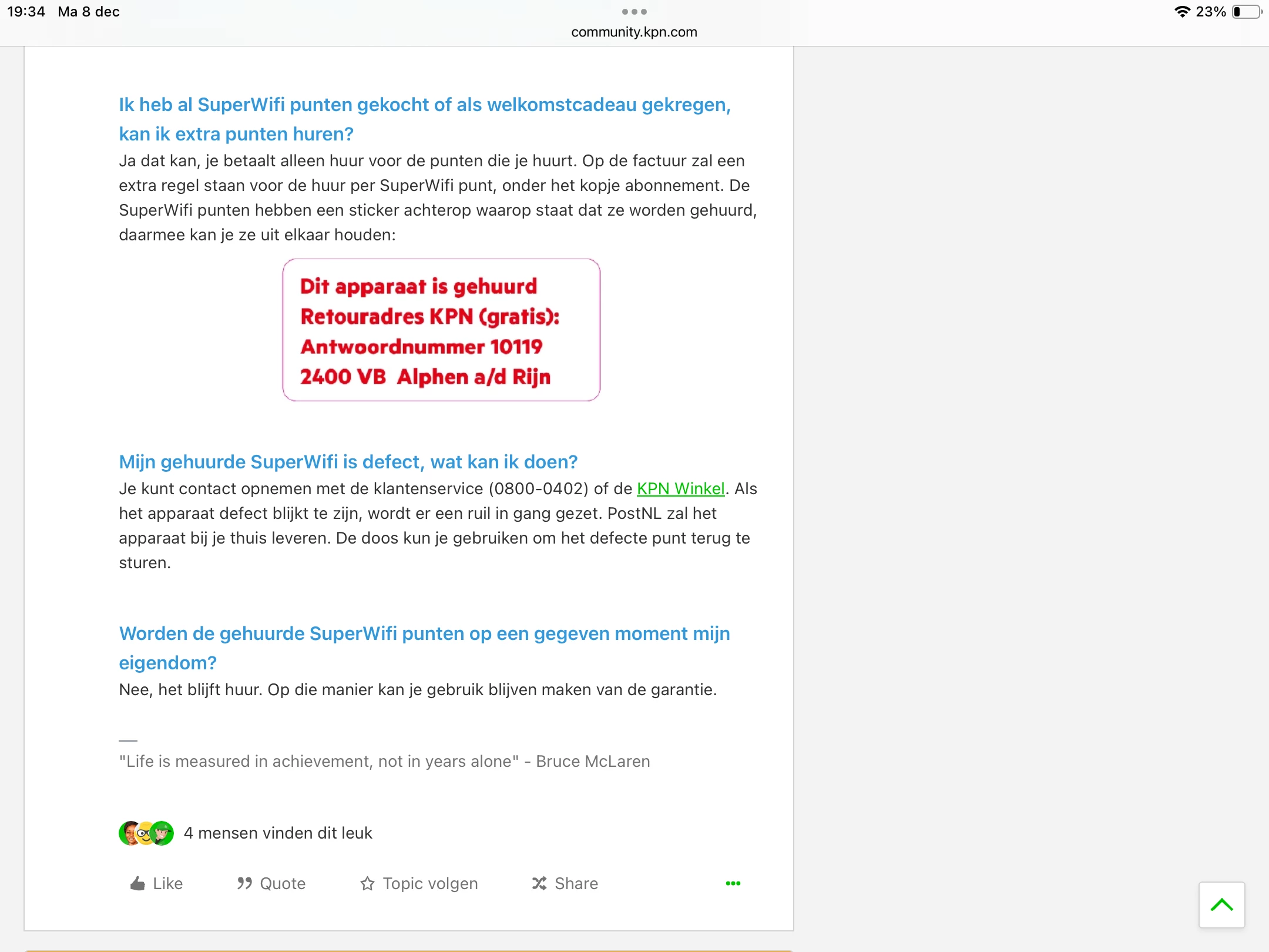 vandaag al de nieuwe versterkers binnen maar nu ratelt 1 van de versterkers en maakt een ratelend en krakend geluid. Gelijk gebeld met de klantenservice, ze kunnen geen nieuwe opsturen en dat ik de defecte terug stuur? Ik moet hem in een kpn winkel omruilen maar nu las ik op dit topic ergens dat ze in de winkels geen huur versterkers meegeven? Ga ik morgen dan voor niks naar de winkel? Je moet een kapotte gehuurde versterker toch om kunnen ruilen want opsturen en een nieuwe krijgen kon ook niet hoewel ik het gisteren pas afgesloten heb?? Wie kan hier duidelijkheid over geven?
