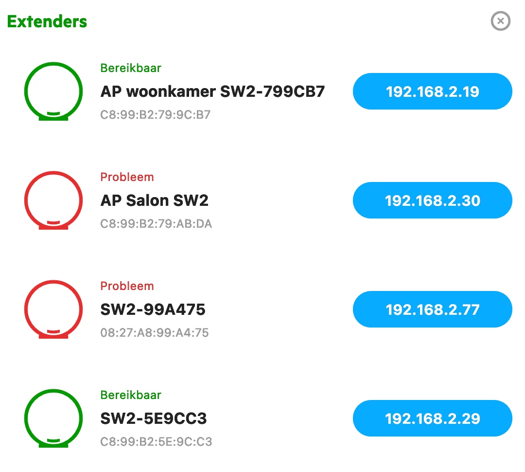 Werkt dat ook niet? Dan een volledige reset van jouw modem en alle SuperWiFi-punten.