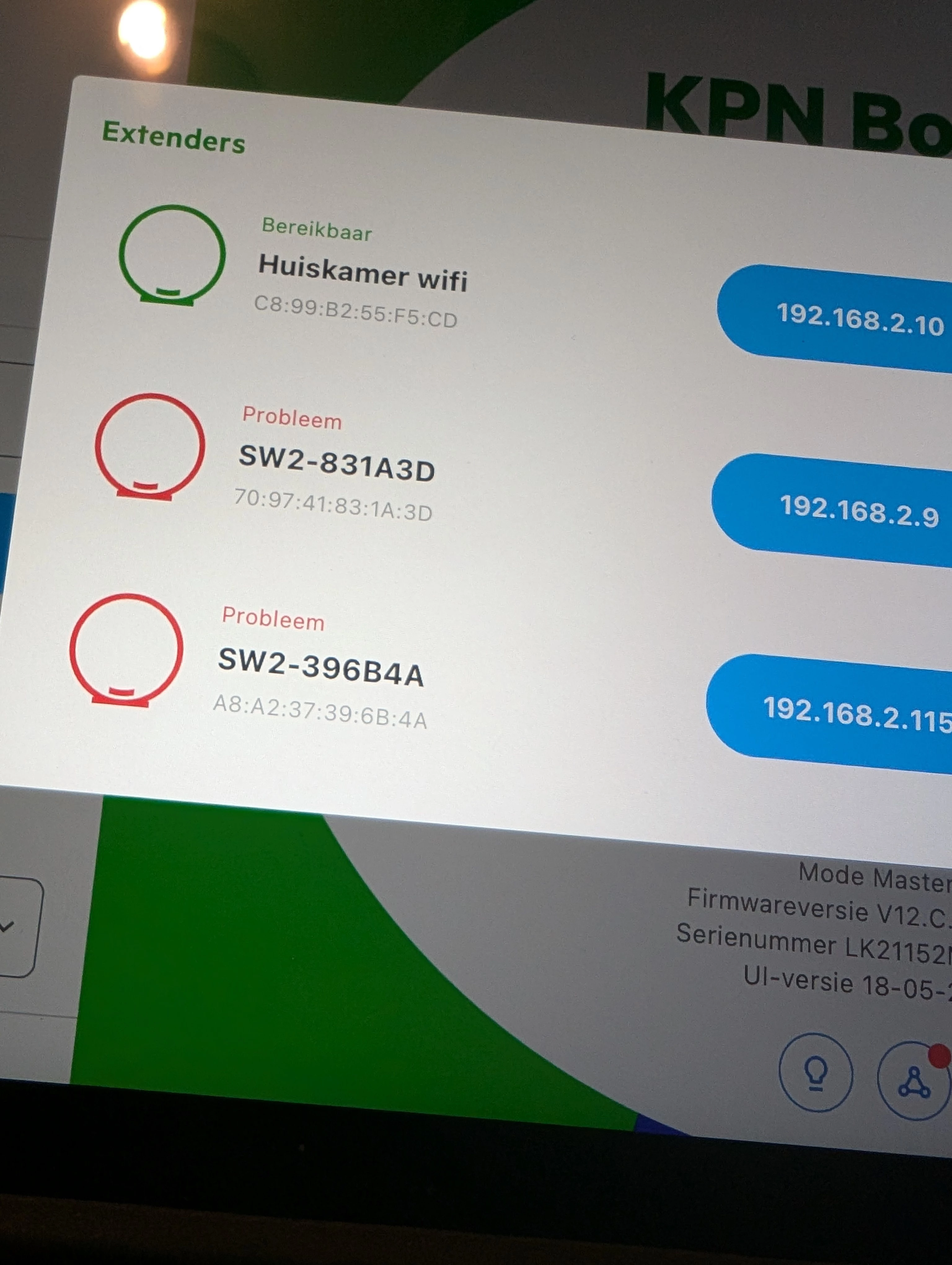 ​@Thomas van KPN helaas nog steeds treed het probleem op. Nu (vd 3 bedraad aangesloten) zijn er 2 paired ipv synced.