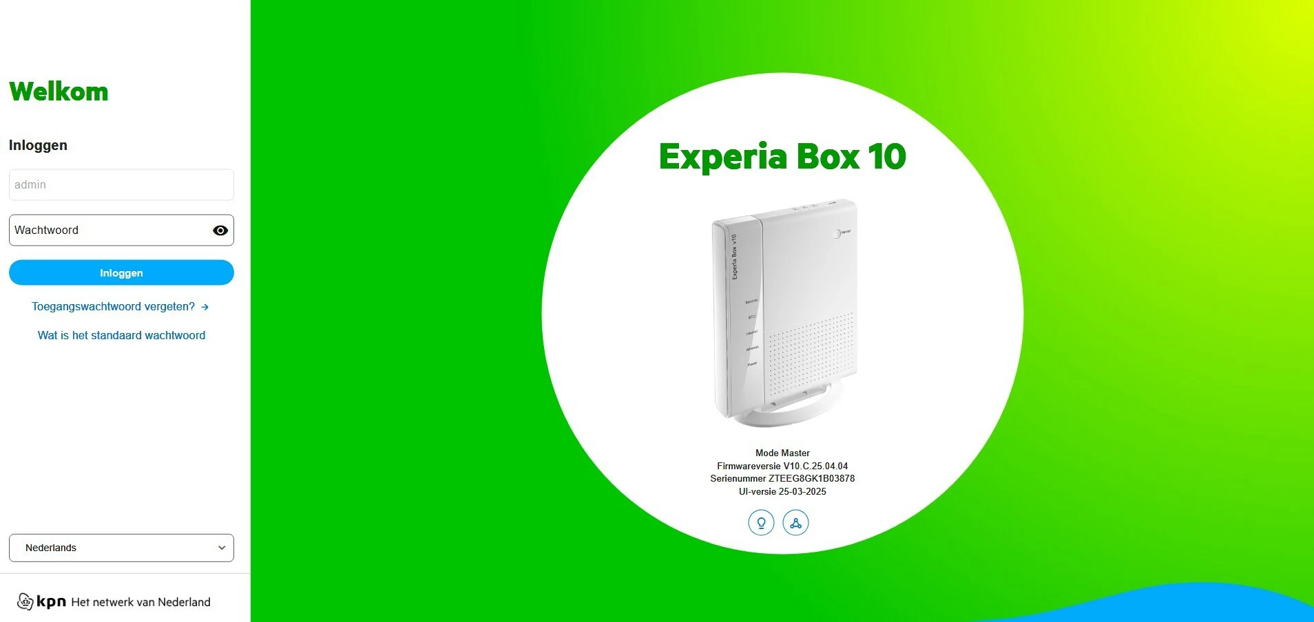 Mijn dochter is onlangs verhuisd en heeft nu glasvezel. Ze heeft haar Experia V10 modem mee moeten nemen en dit is door een KPN monteur aangesloten. Nu heeft ze beneden wel WIFI maar boven op de voorkamer wel redelijk maar op de andere kamers en op zolder is de WIFI dramatisch.