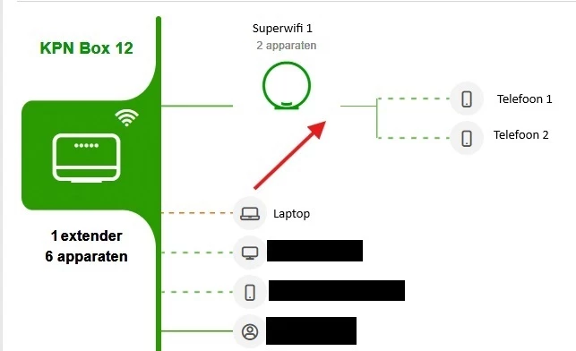 1. Kijk of het superwifipunt echt onderdeel is van hetzelfde netwerk als de Box 12.