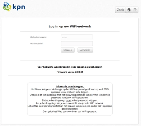 Voor de volledigheid ook even inlogscherm SWP, zoals te zien is inlogscherm ook aardig verouderd (ten opzichte van het modem en mijn eigen SWP)