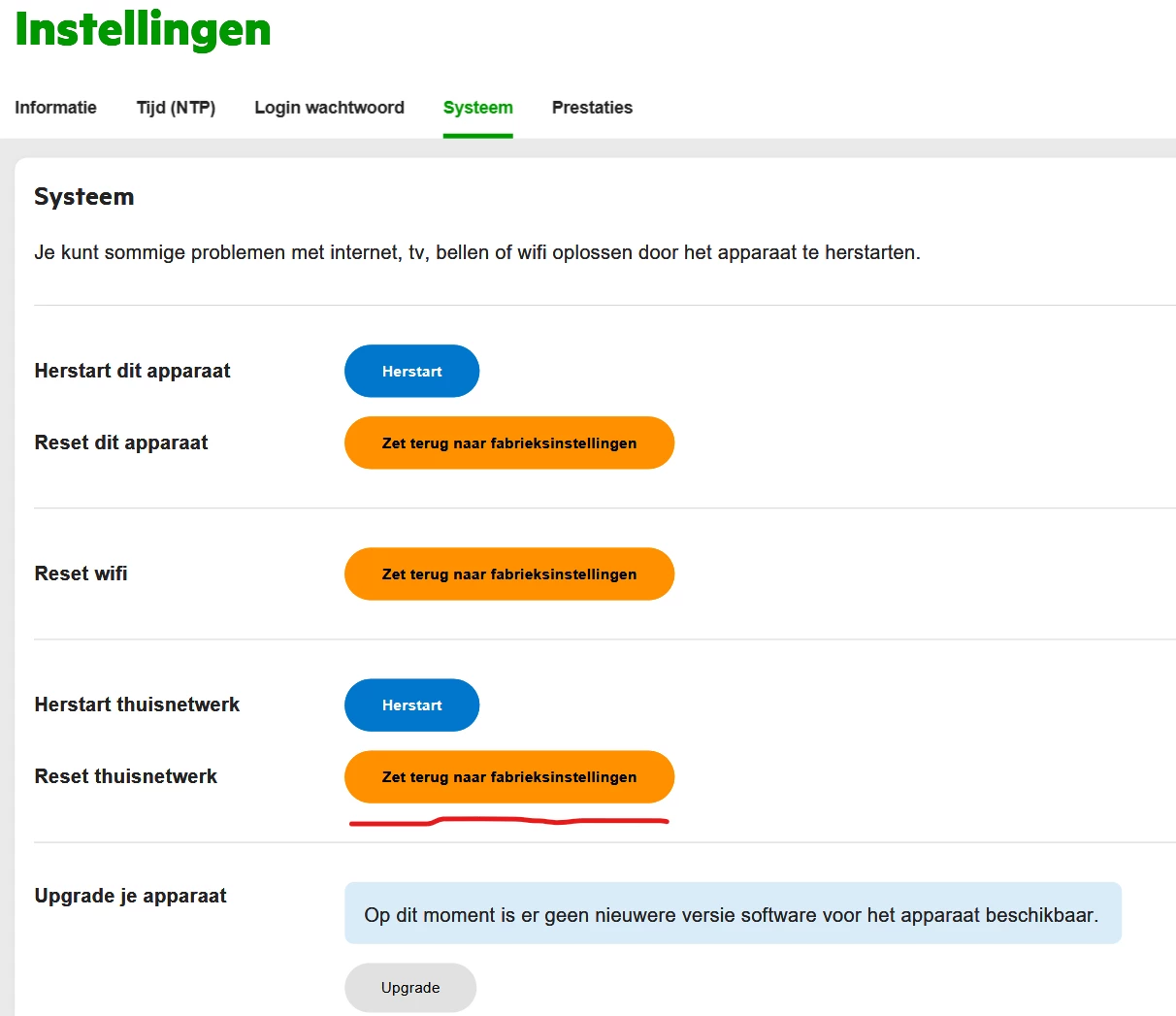 • heb je wellicht de firewall instellingen van het modem aangepast? Zo ja, zou je die (tijdelijk) eens terug willen zetten naar ‘standaard’?