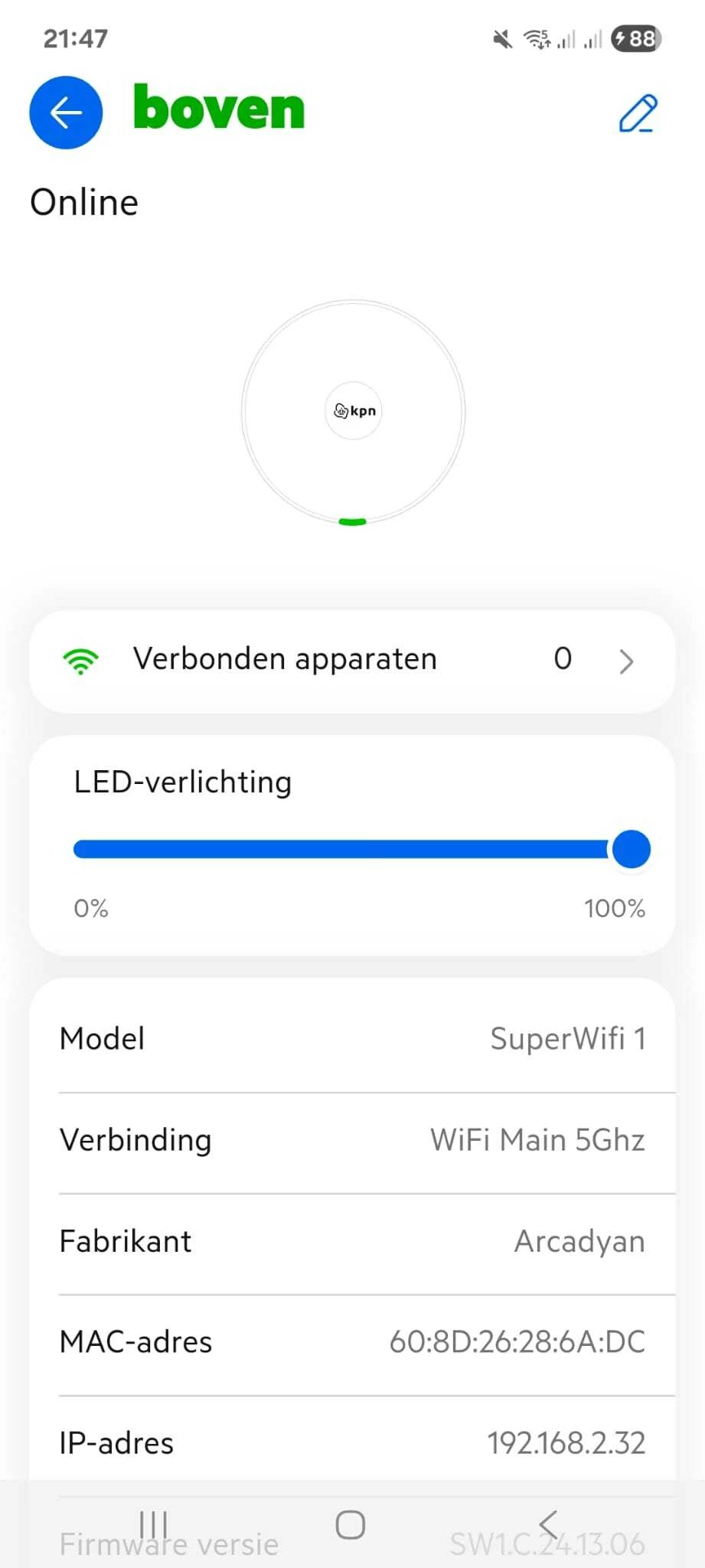 Na update zijn SuperWifi 1 punten niet meer te zien in MijnKPN app. Telefoon verliest ook vaak Wifi verbinding