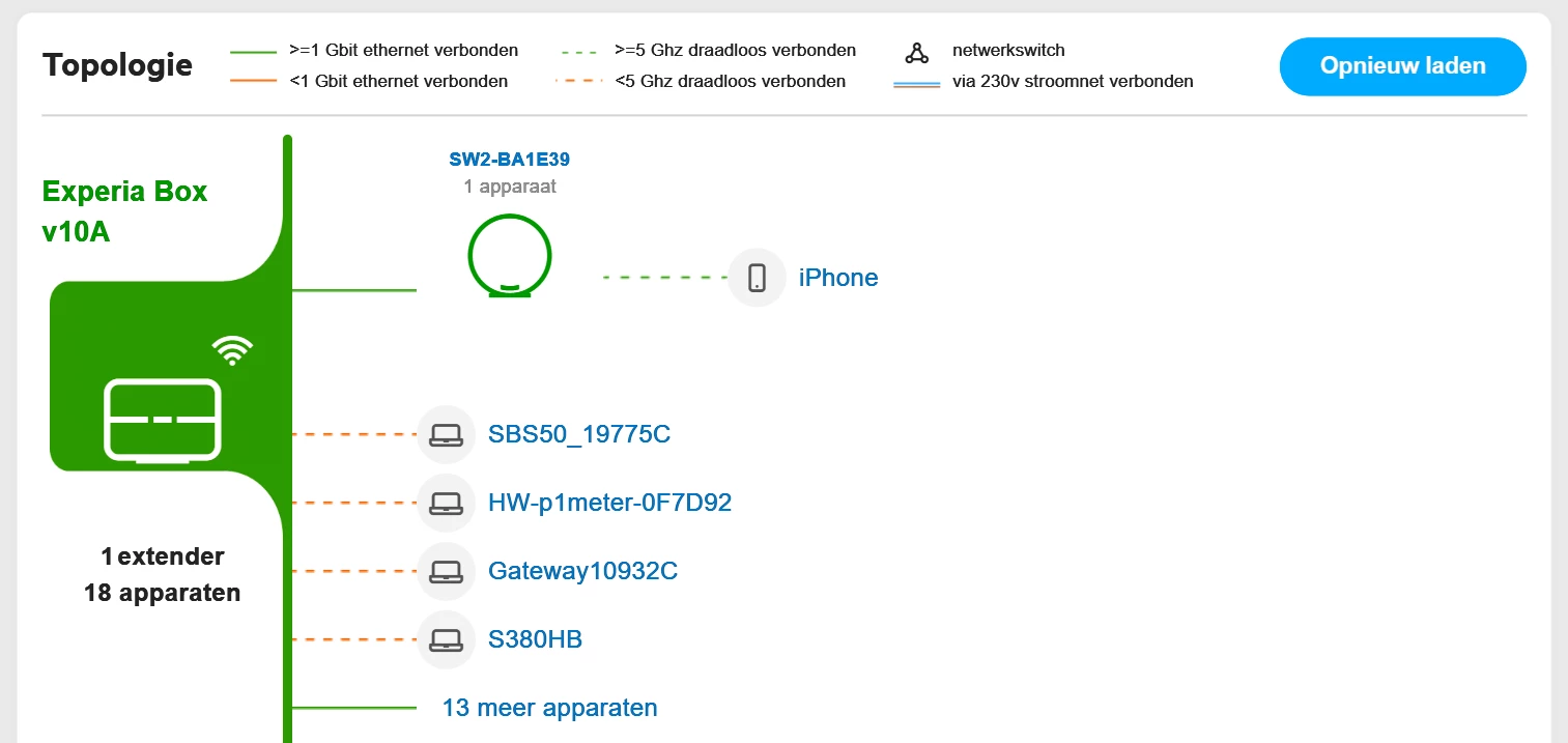 Overzicht als ik inlog via de webinterface op het ip-adres die staat onder apparaten in de modem.