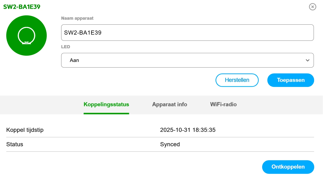 Ingelogd op het apparaat die niet als extender staat kom ik op het volgende scherm: