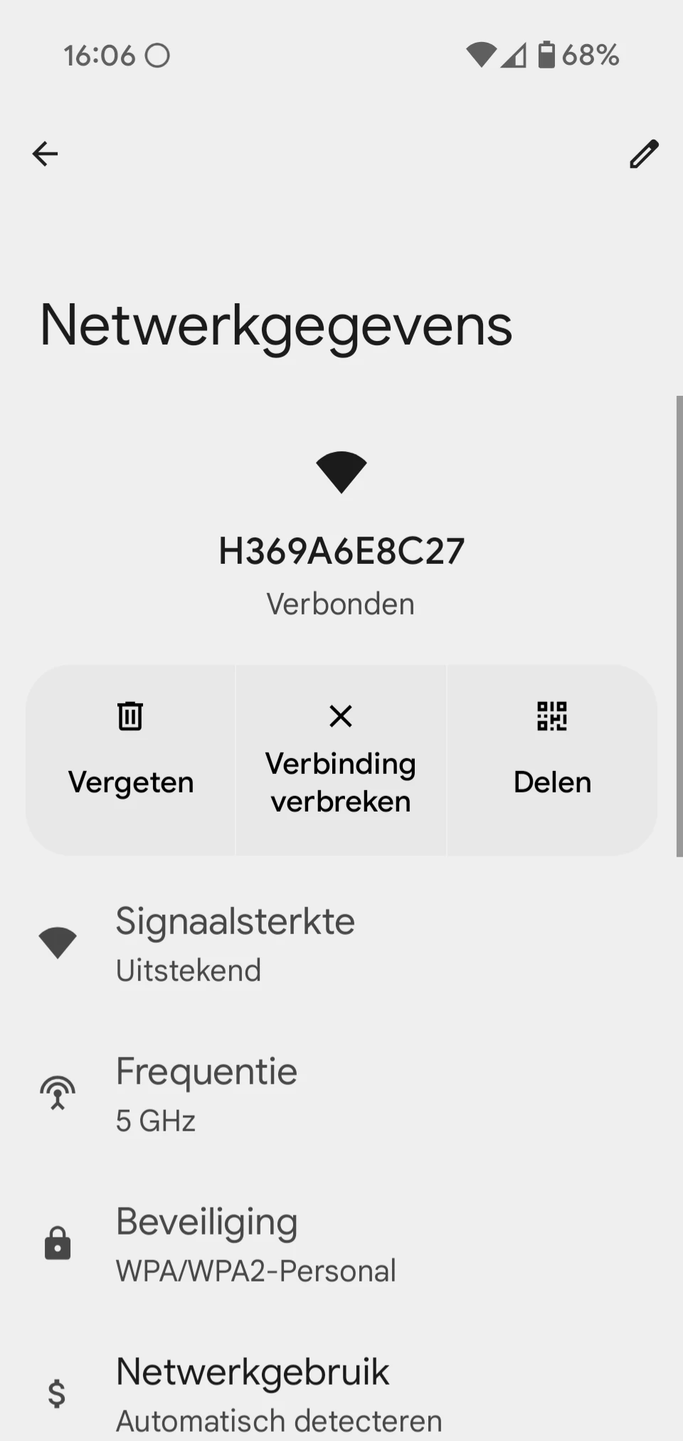 Alleen bleef de wifi op mijn telefoon (Google Pixel 9 Pro) steeds weg te vallen (wel verbinding geen internettoegang of niet in kunnen loggen).