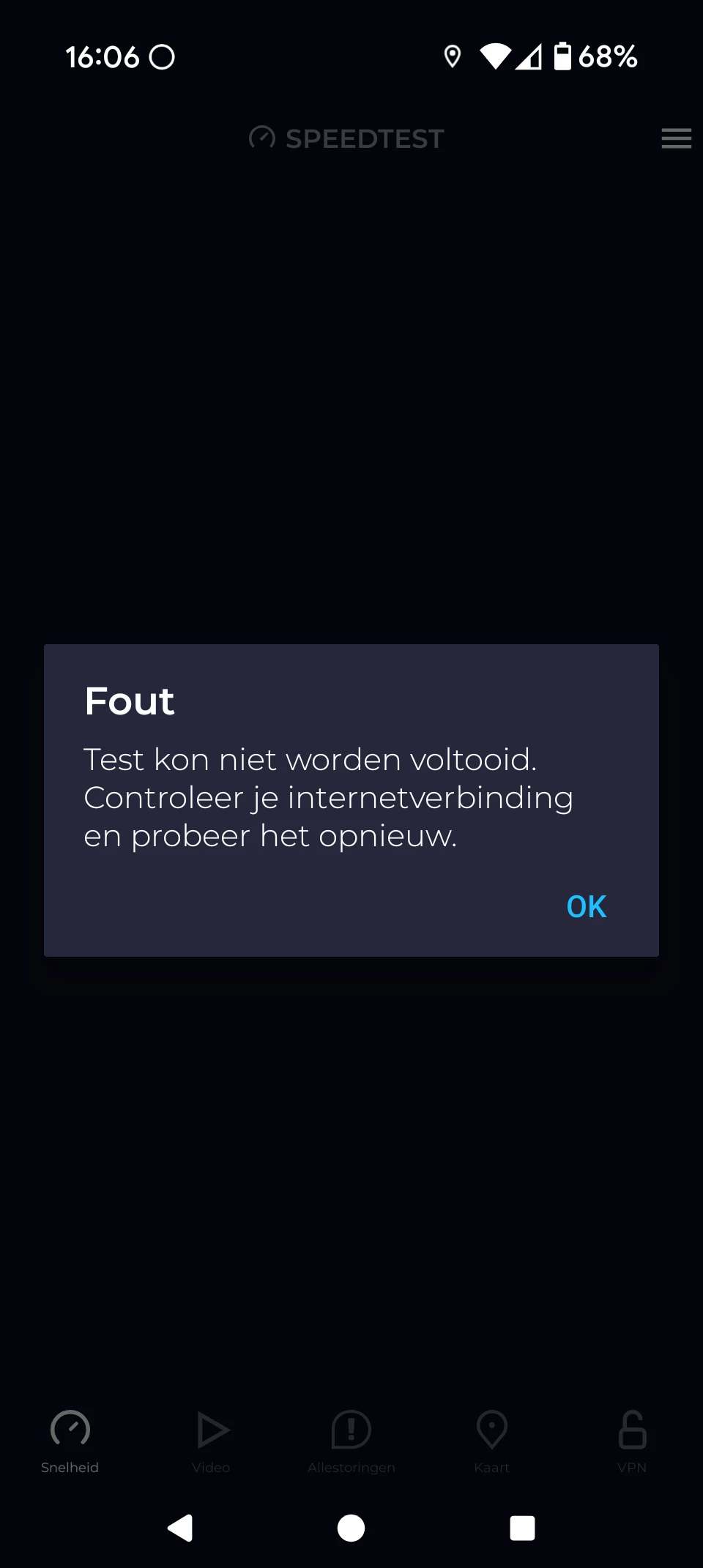 Na een uur kreeg ik geen verbinding met de MijnKPN app. Doe een Speedtest en zie dit: