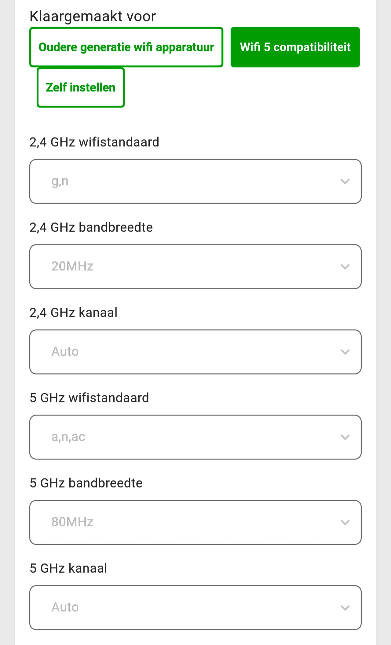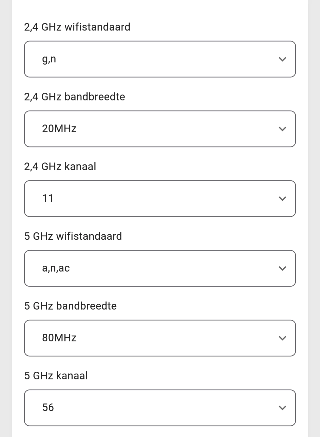 Toch wordt geadviseerd om bij 2,4GHz 20 MHz te gebruiken om mogelijk storingen/conflicten te vermijden.