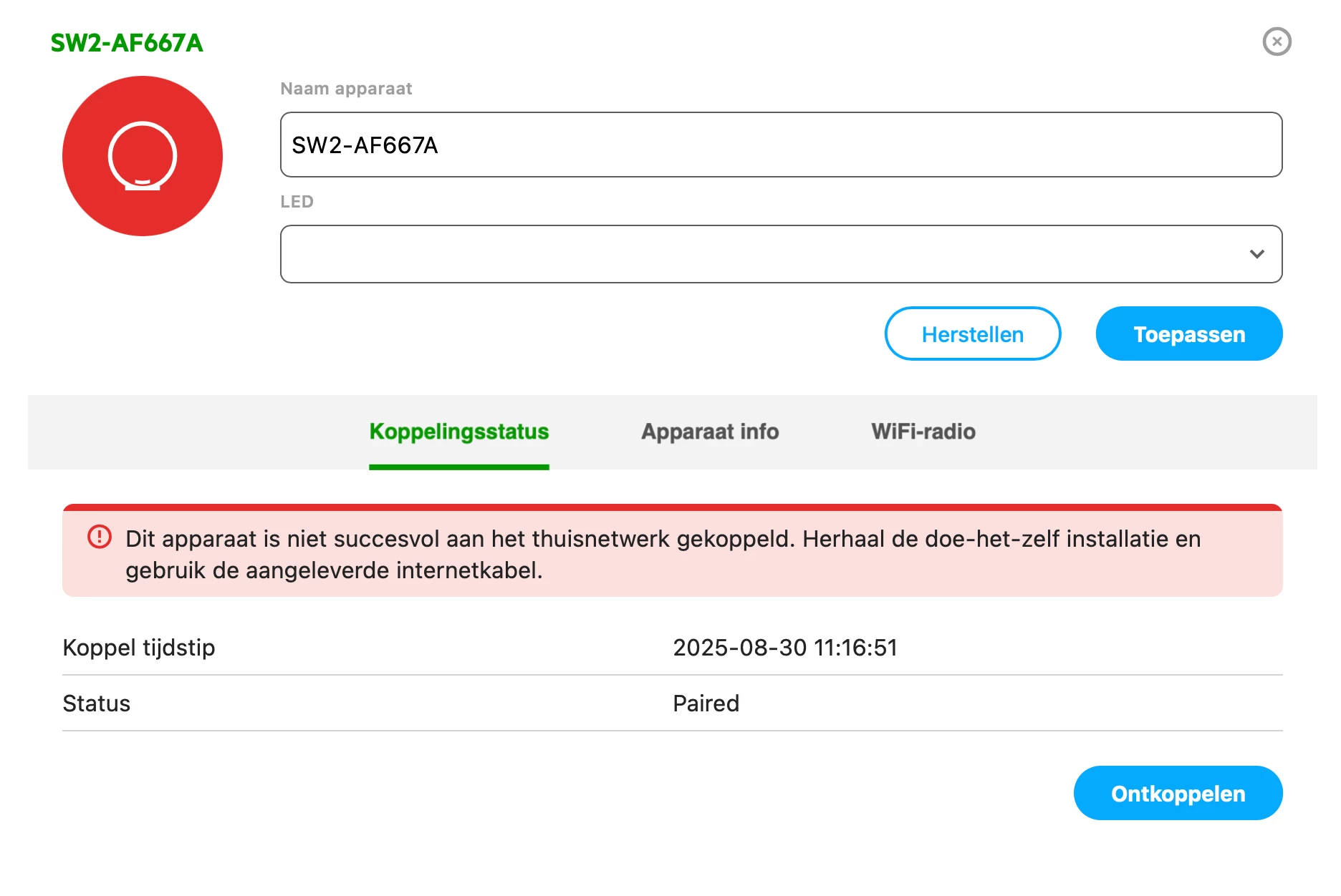 Super Wifi2 ineens niet meer aan thuisnetwerk gekoppeld