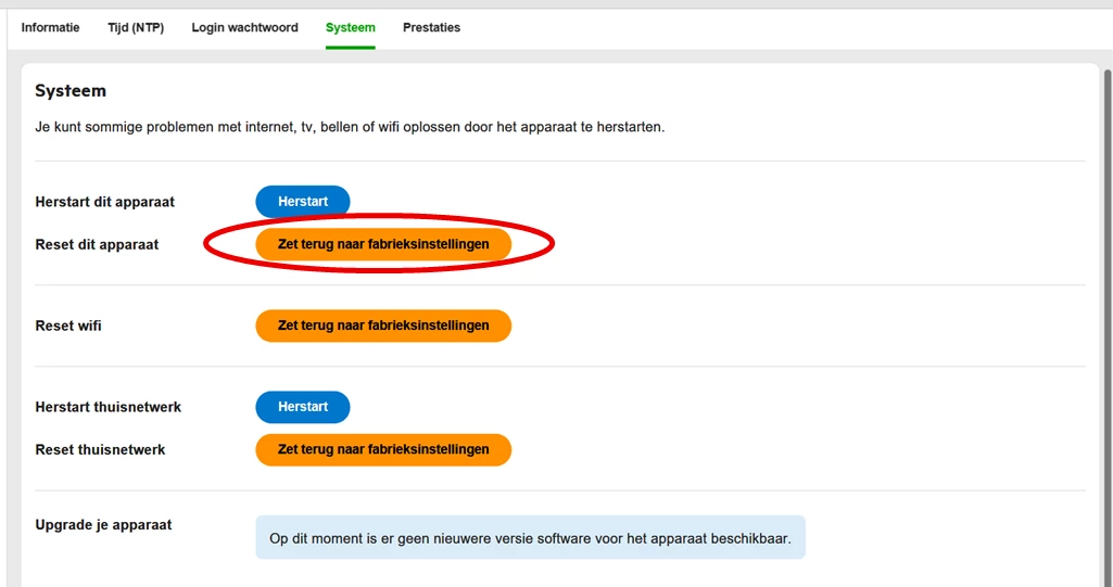 Update: Modem terug naar fabrieksinstellingen via modem interface: