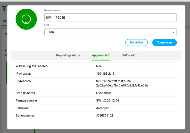 Dus eigenlijk zijn van de v10A en de SW1 de software versies up to date, en toch werkt het niet onbekabeld. Kan er nog iets anders zijn?