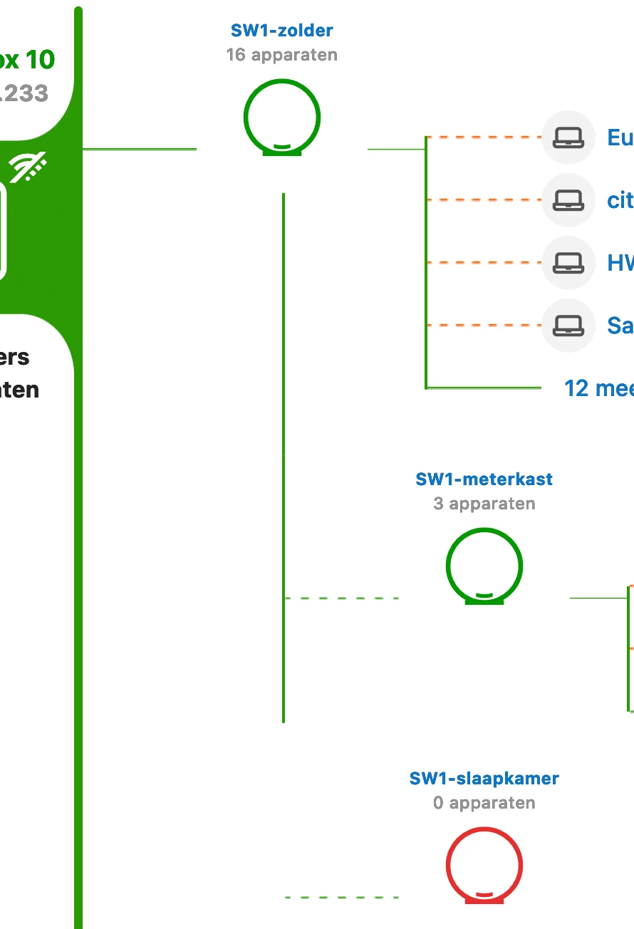 Nou het geheel is weer goed waardeloos. Ogenschijnlijk werken beide wifiversterkers wel weer maar er klopt gewoon niets van. Op de modempagina wordt mijn 1e extender nu aangegeven als draadloos verbonden terwijl er toch echt een kabel in zit. De andere wordt in  de topologie wel als aangesloten aangegeven maar aangezien ik nu wel weer problemen heb met het bereik vraag ik me af of hij daadwerkelijk wel wat doet.