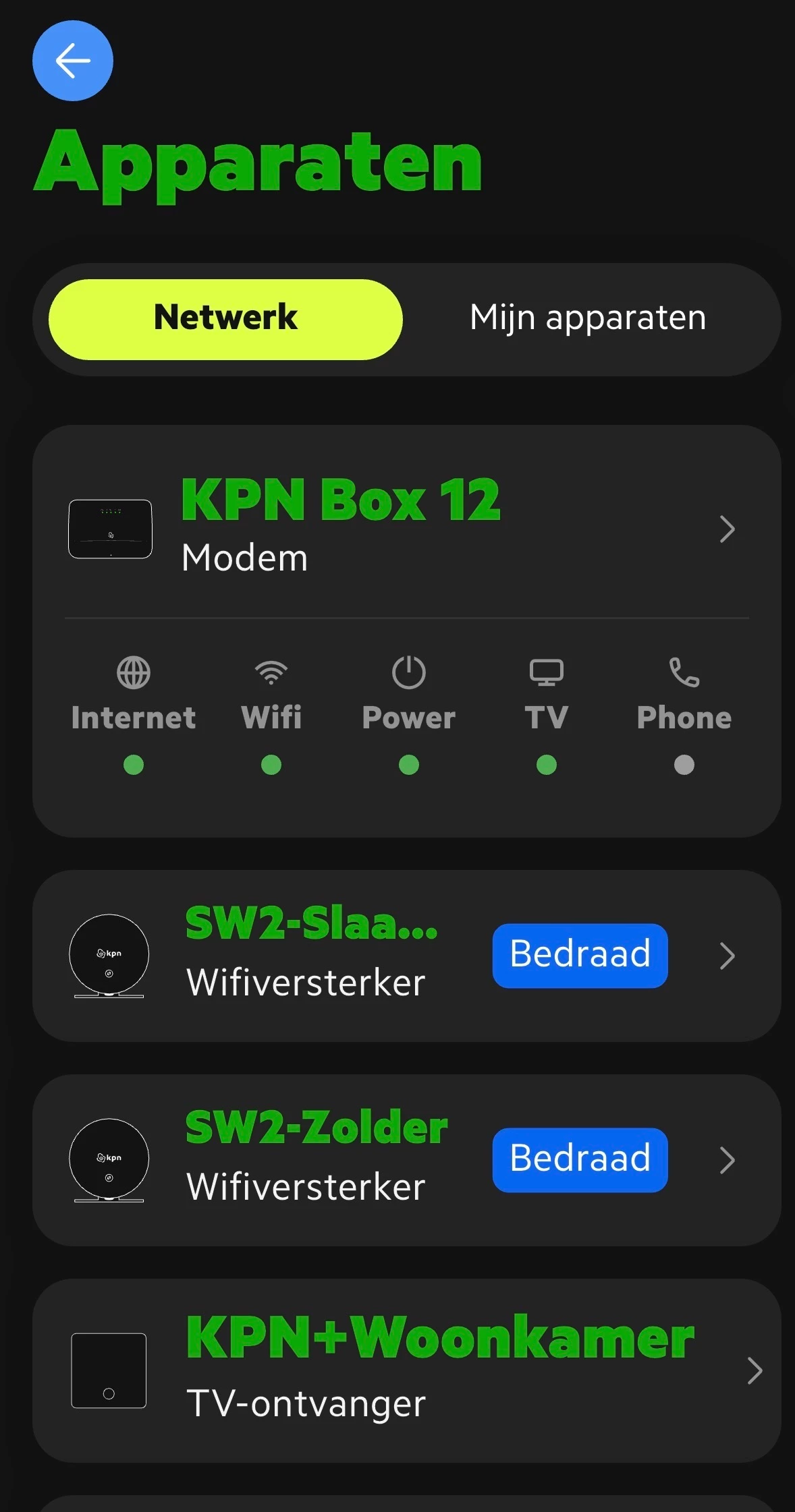 Ik vraag me af of het ook te maken kan hebben dat er meerdere sw betrokken zijn. Ik heb maar 1 SW. Ik zag eerder dat de status van de sw op twee verschillende plekken in de mijnKPN app verschillend werd weergegeven. Zonder update werd dat probleem opgelost dus mijn conclusie is dat er aan KPN kant ook nog wat gedaan wordt met de gegevens om bijvoorbeeld de wifi kwaliteit te meten en terug te sturen naar de app.