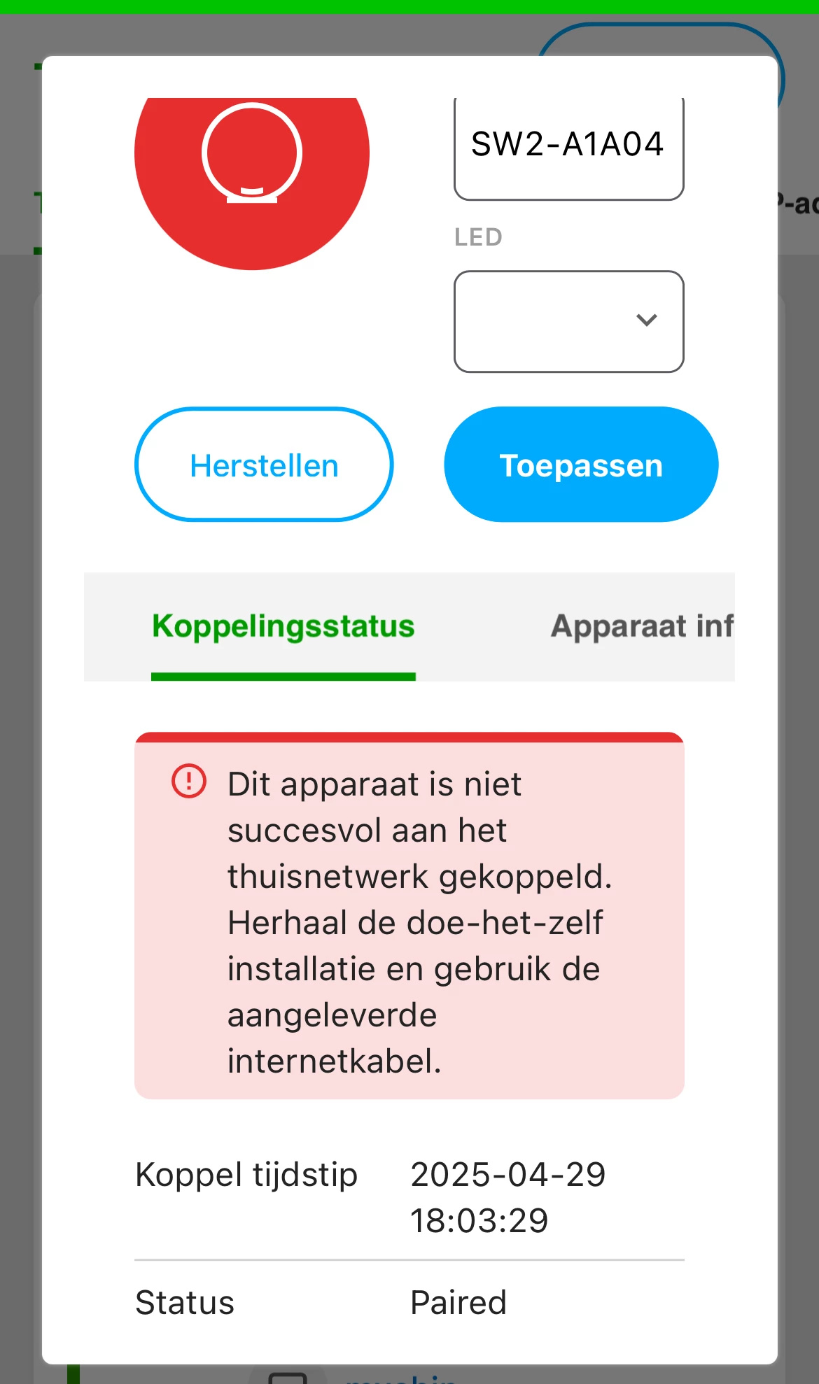 Hallo. Hier precies dezelfde situatie sinds 04/jun/25 (althans opgemerkt). Alle drie superwifi punten doen het niet meer. Als ik via de router kijk zie ik wel een verbinding van 1 Gbps maar er zijn geen apparaten gekoppeld via wifi. Het icoon is dus ook rood. Resetten van de Superwifi en rebooten van de router hebben bij mij niet geholpen. Wifi van de router werkt. Vaste verbindingen werken ook. Ik kan alles resetten maar daar zit ik niet 1-2-3 op te wachten.