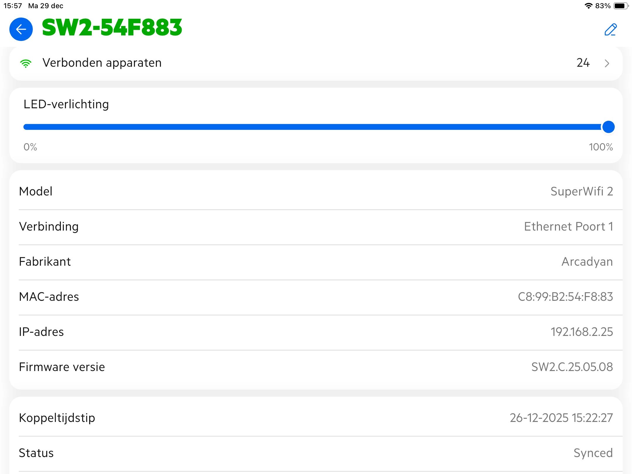 • Van de SuperWifi 2 is te zien of ze "Synced" zijn, of "Paired"
