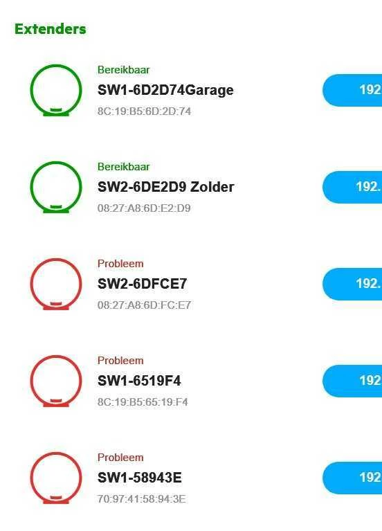 Maar als ik nu inlog op het thuisnetwerk (via de v10 box) geeft deze vaak aan dat er 1 of meerdere superwifi's  "problemen” hebben.