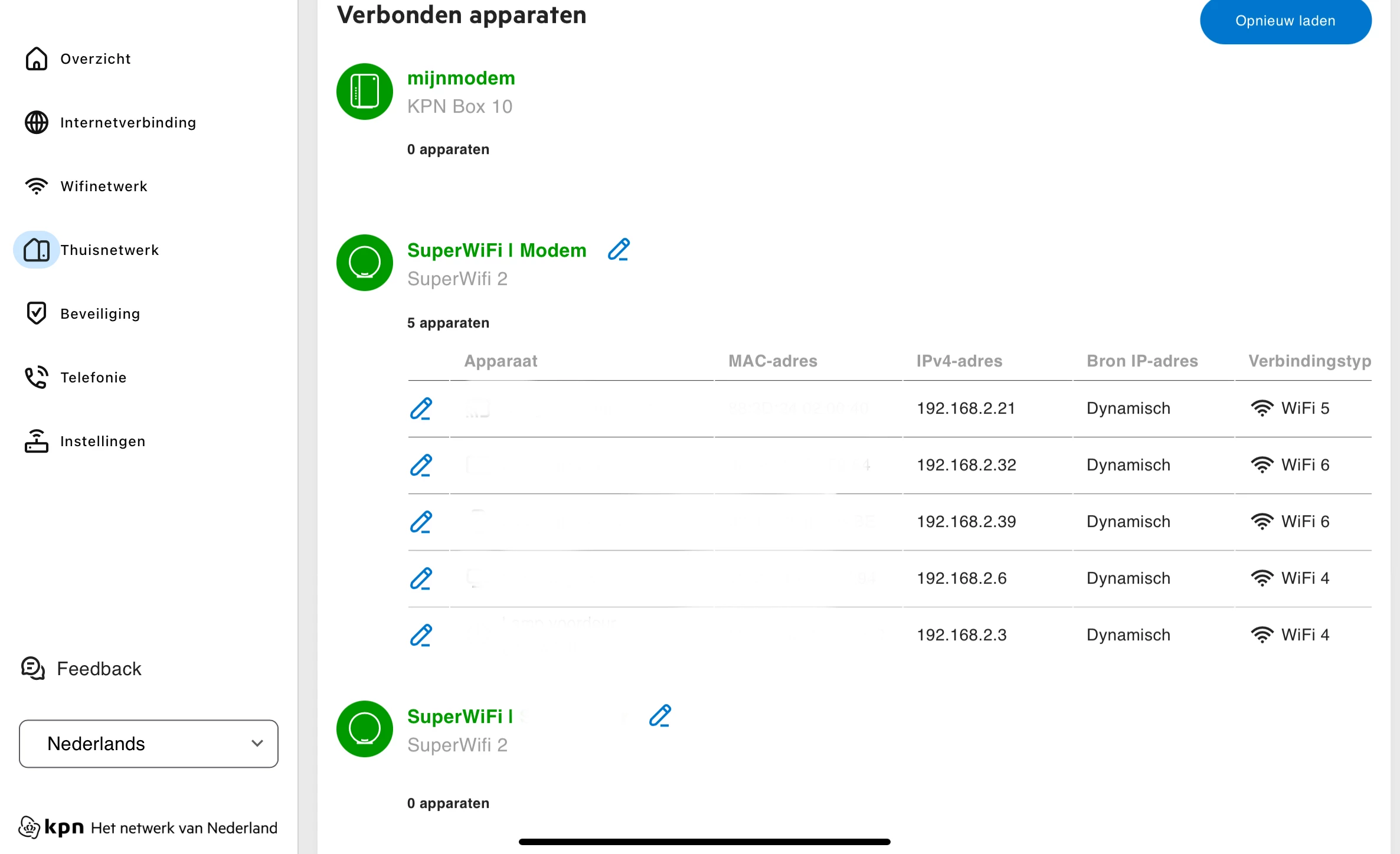Als je dan bij Thuisnetwerk > Verbonden apparaten kijkt, zie je ze er dan niet tussen staan?