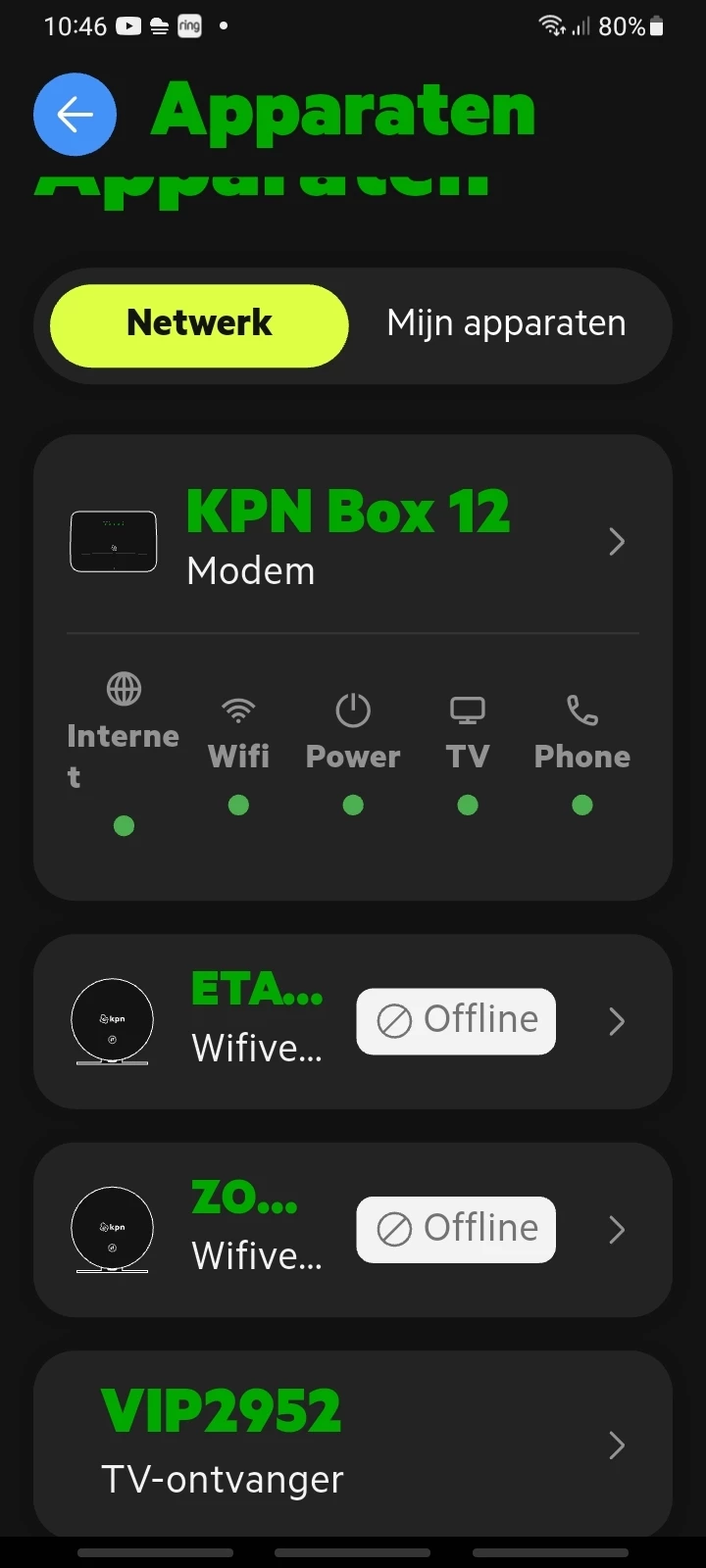 Wifi signaal zakt weg en MijnKPN app geeft de versterkers als offline weer