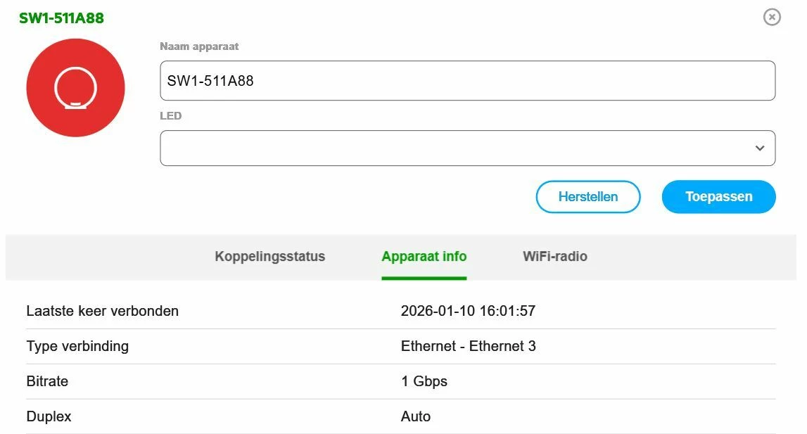 De status is koppig dus! Daarmee kan het SuperWifi punt wel gewoon goed werken, maar schakelen apparaten minder makkelijk over naar andere wifipunten als je uit bereik van deze bent.