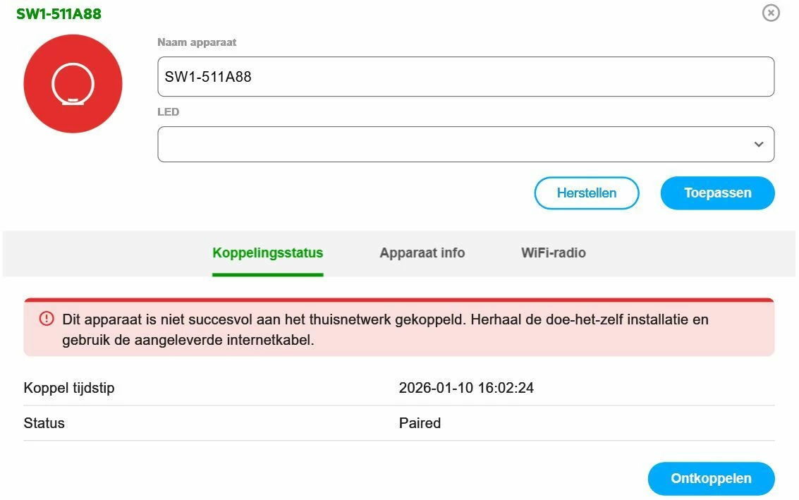 Die status klinkt een stuk beter inderdaad 😄 Ik hoop met je mee dat het nu zo blijft werken! En mocht het onverhoopt toch weer op Paired komen te staan, dan kan je het thuisnetwerk nogmaals herstarten als eerste stap.
